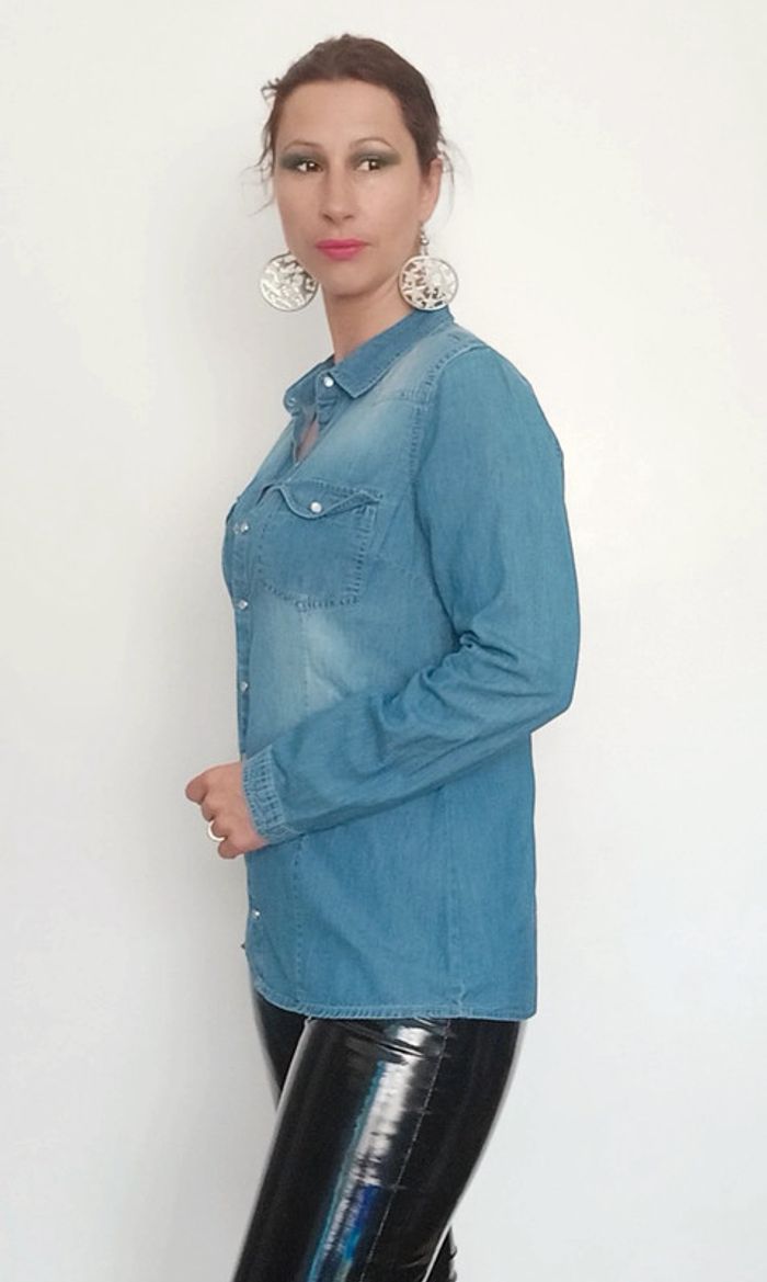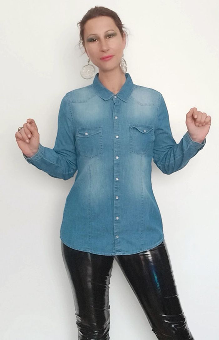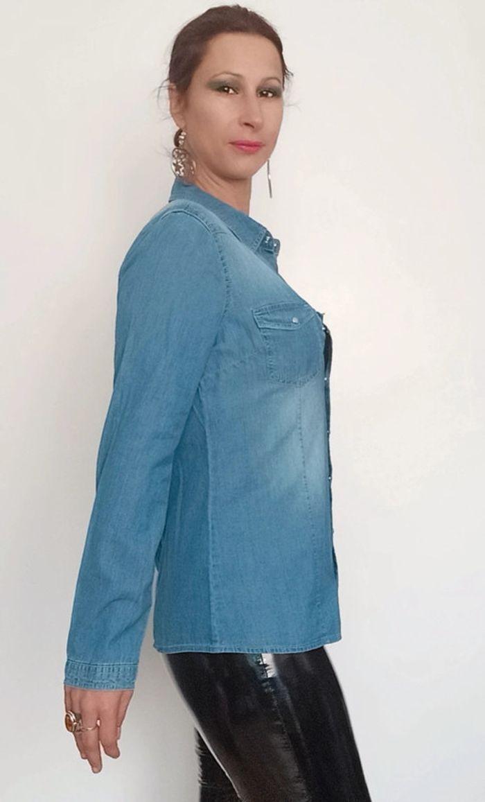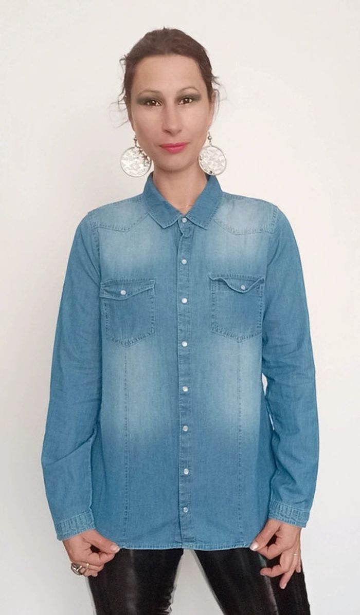 Facile a porter et à assortir, boutons pression, confortable et #casual #chemisejeans #chemisejeans40 #chemisebleue40 #chemise40 #poupoupidou40