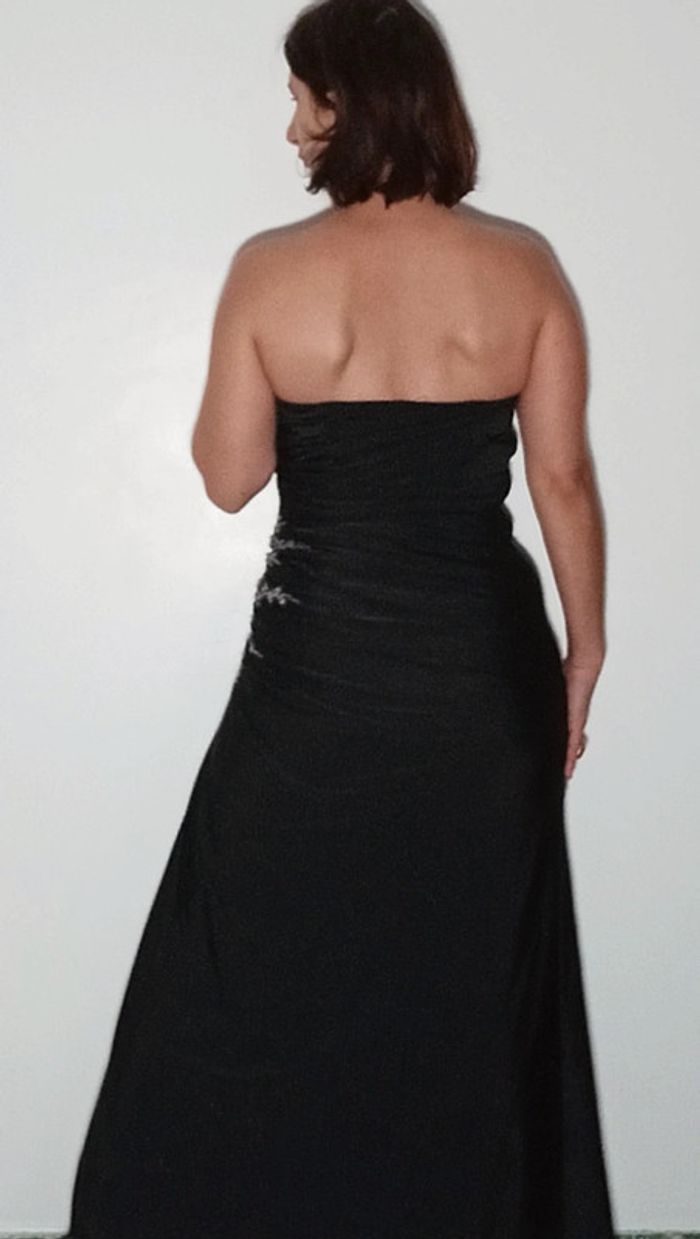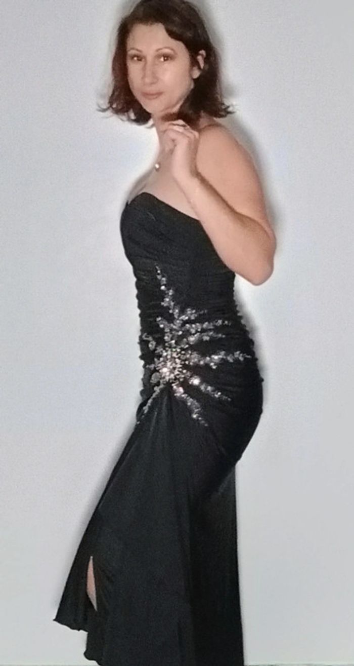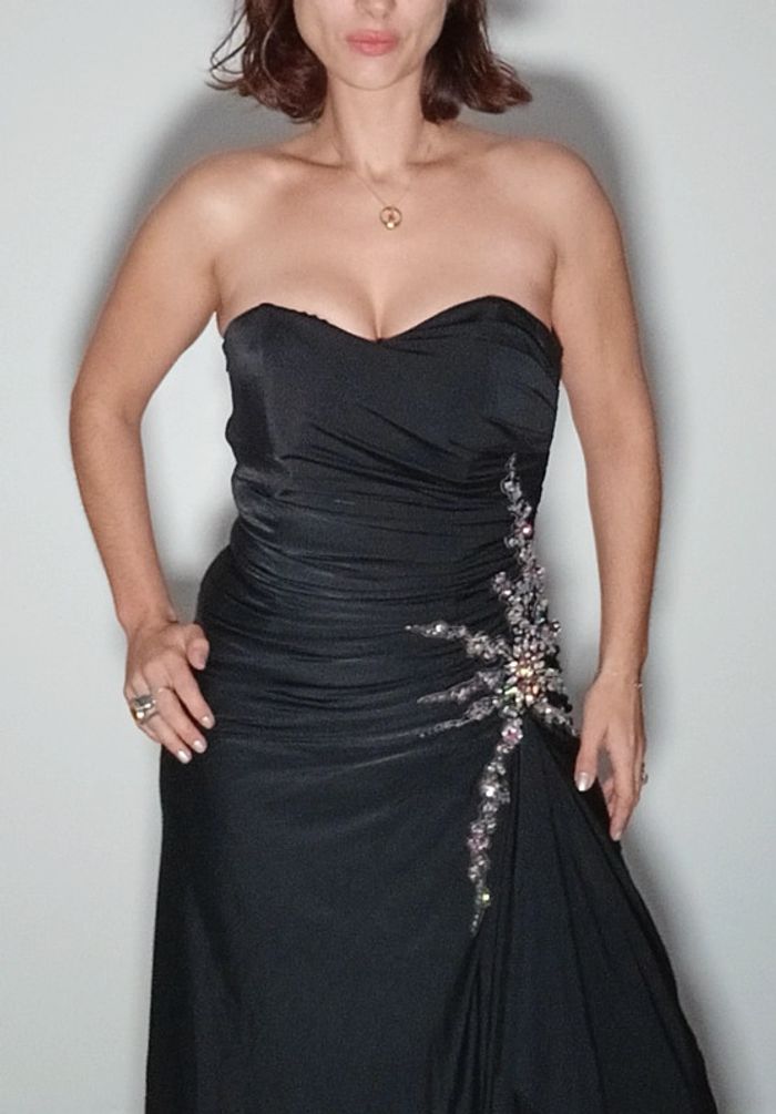 Robe de qualité, matière épaisse froncée extensible et gainante, bustier forme V avec léger rembourrage, bijoux pierres brillantes, forme sirène en haut de la jupe puis évasée, legerement asymétrique, très belle, beaucoup d effet.Taille 8 soit 38 ( peut convenir jusqu au 40!) #robecocktailxl #robepinupxl #robedesoireexl #robegalaxl #robefetedxl #robebustierchic #pinupxl #robenoirstrass #robebijoux #robenoireprincesse #poupoupidou38