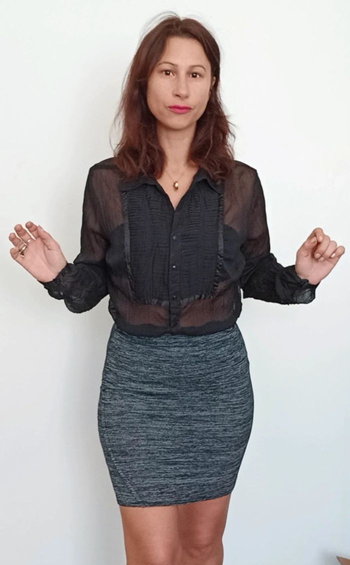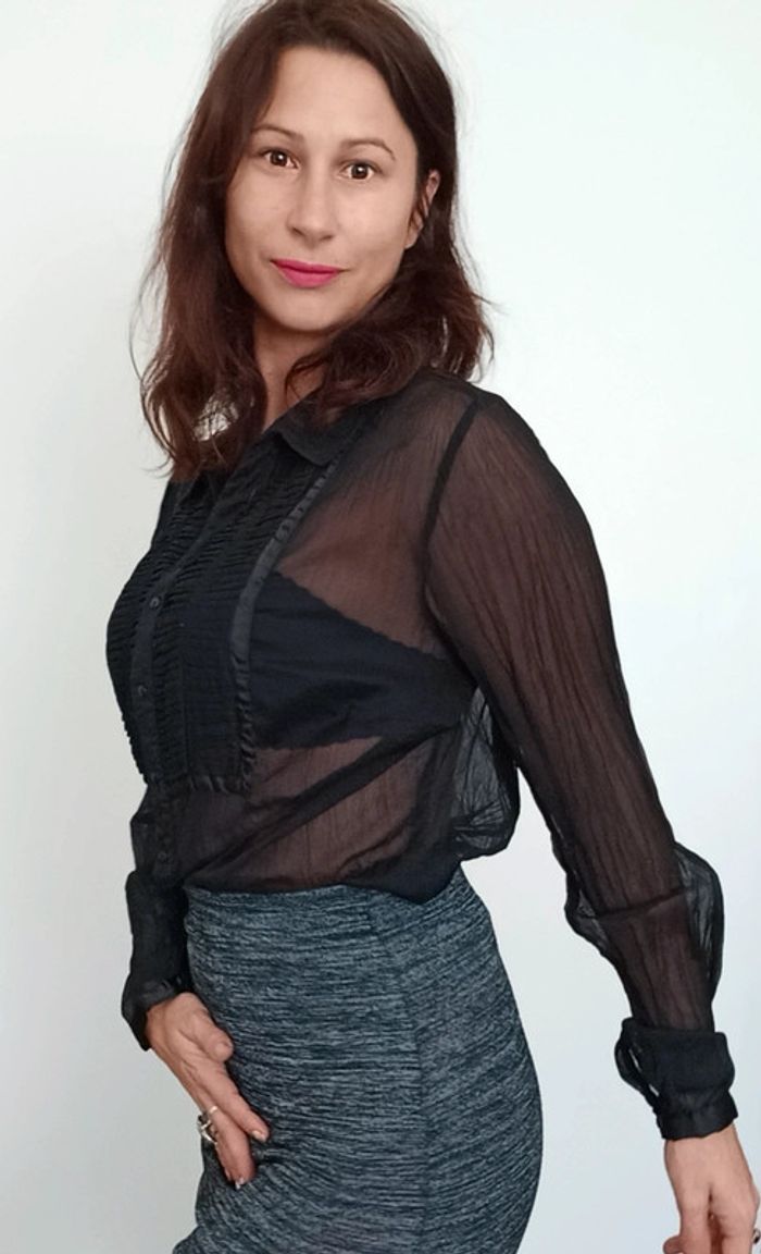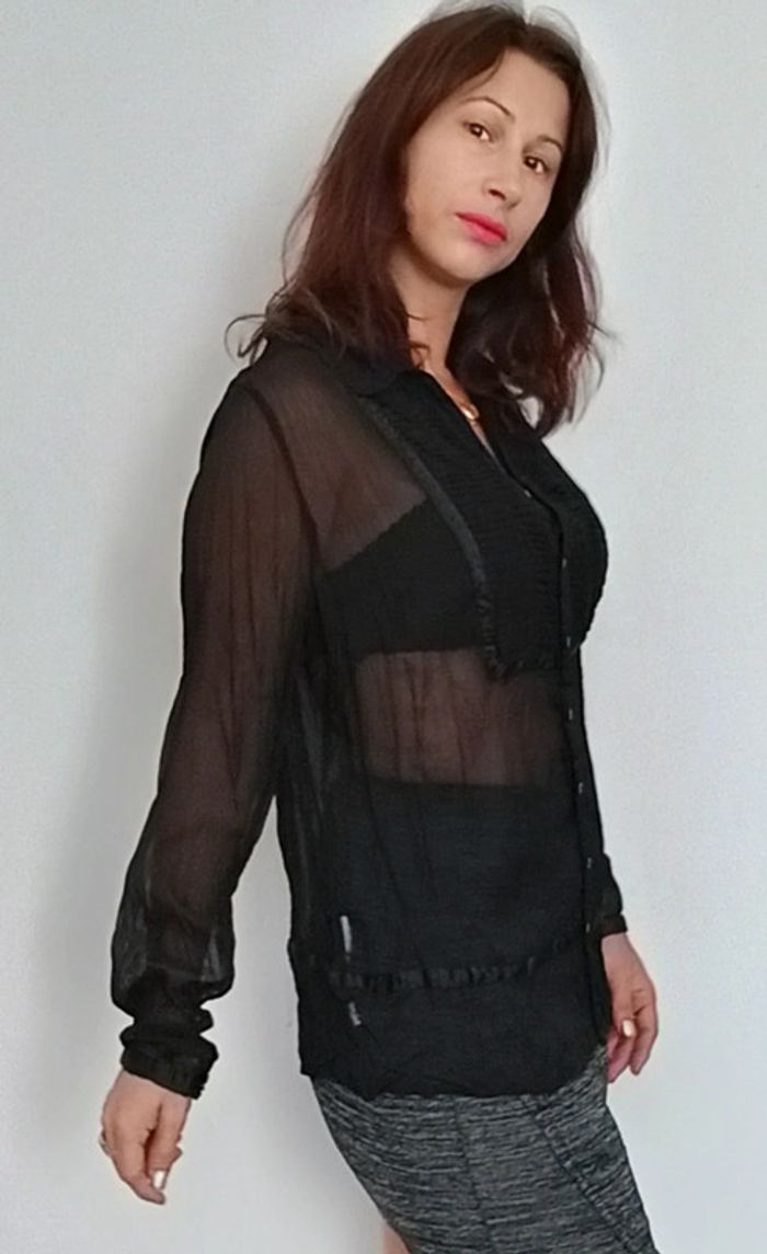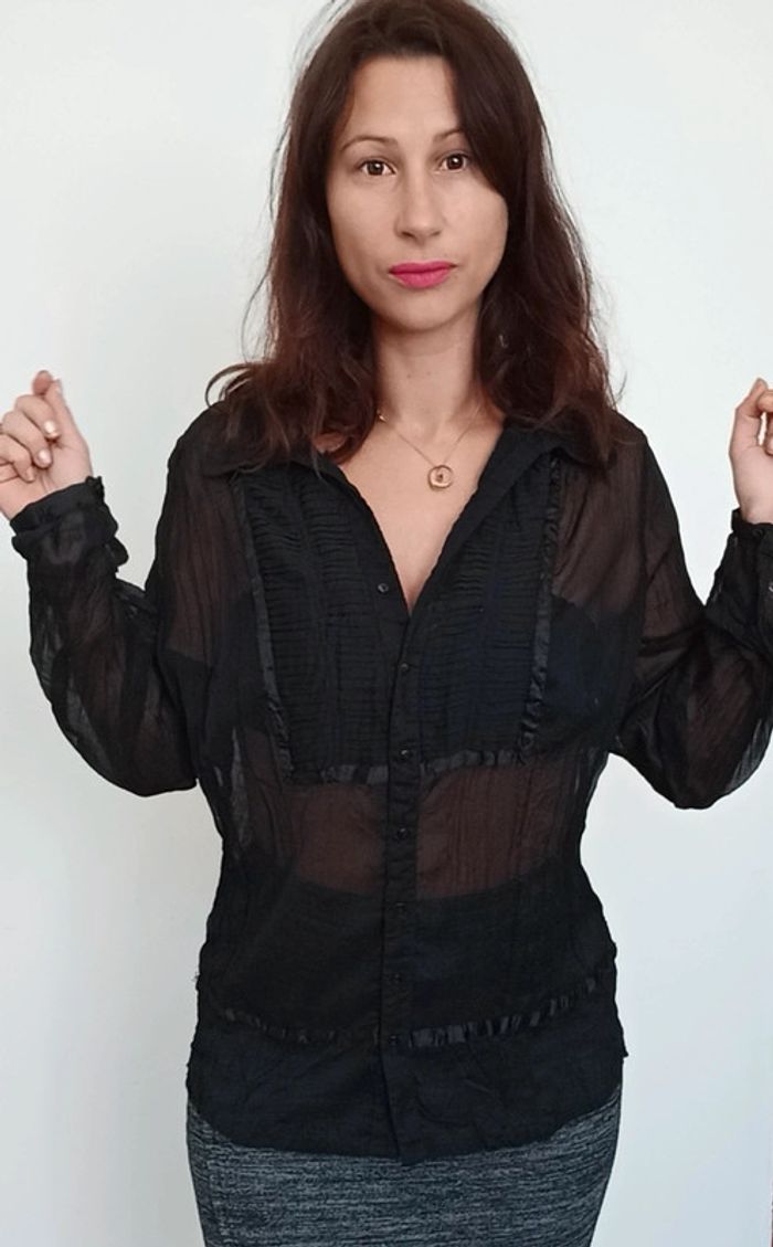 Chemisier voile noir chic 40