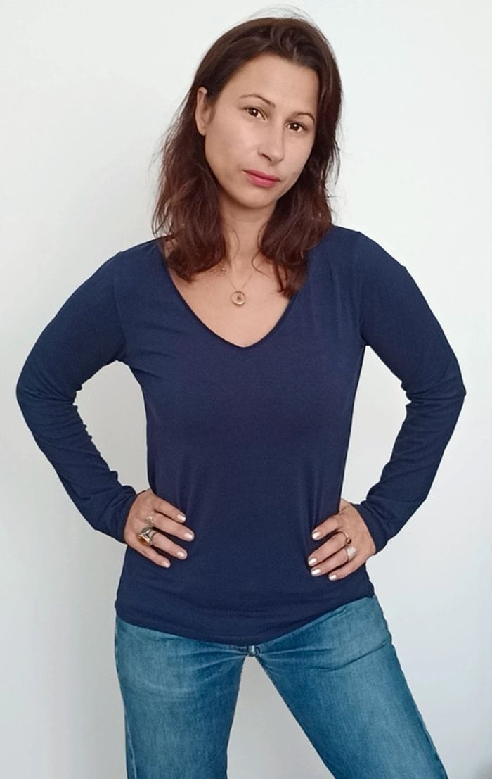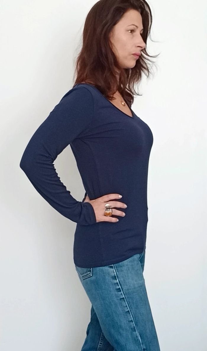 Marine, confortable et facile à assortir #hautmancheslongues #hautmancheslongues40 #hautmarine40 #hautlahalle40 #poupoupidou40