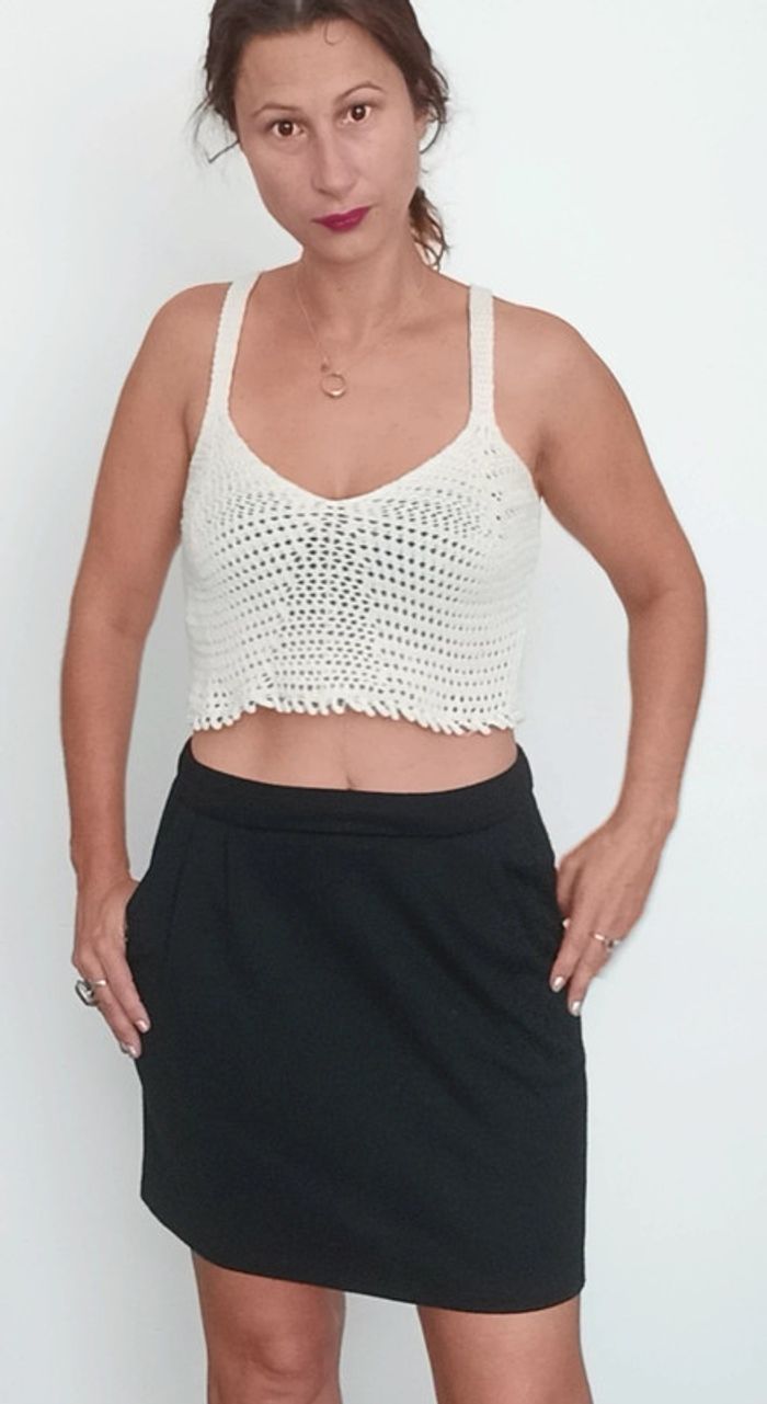 Top crop crochet féminin ou #sexy beige taille s peut aussi convenir aux M #topcropcrochet #topcrop36 #topcrop38 #topcourtcrochet #topcrochet36 #topcrochet #poupoupidou38