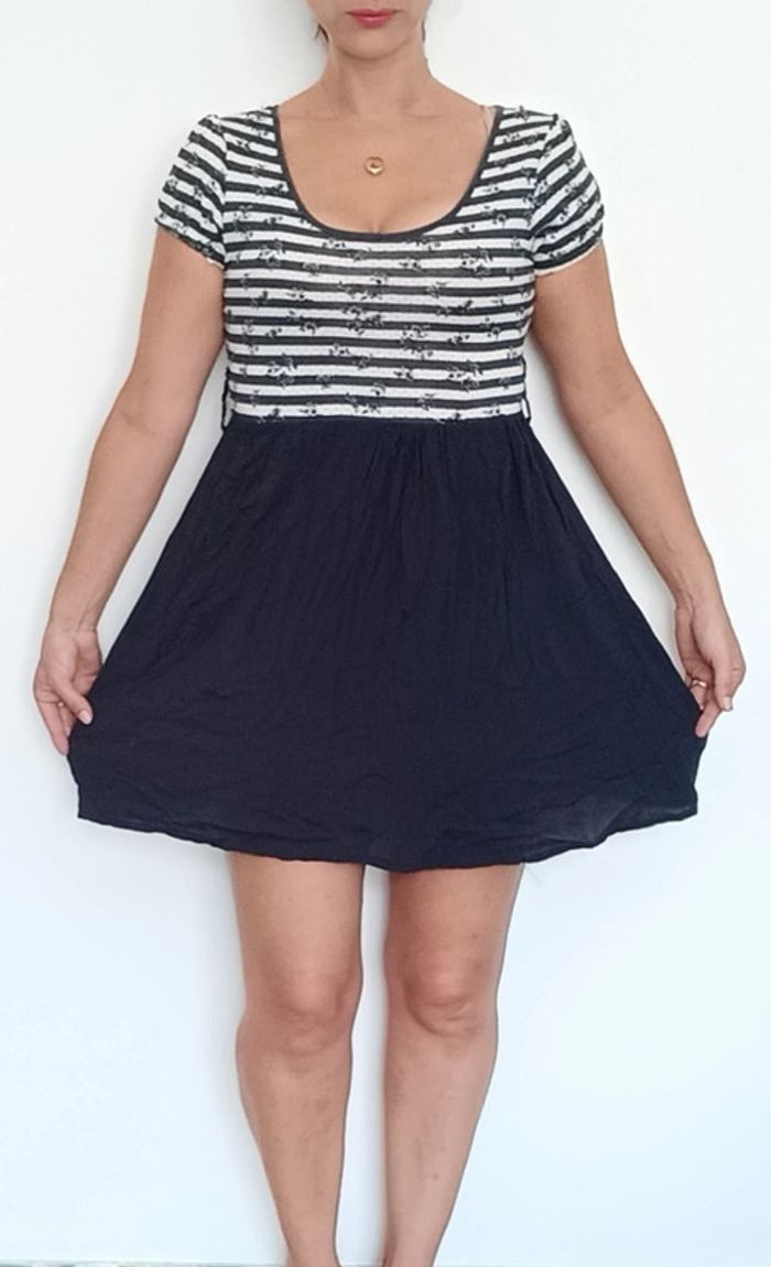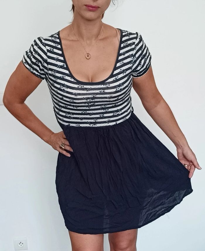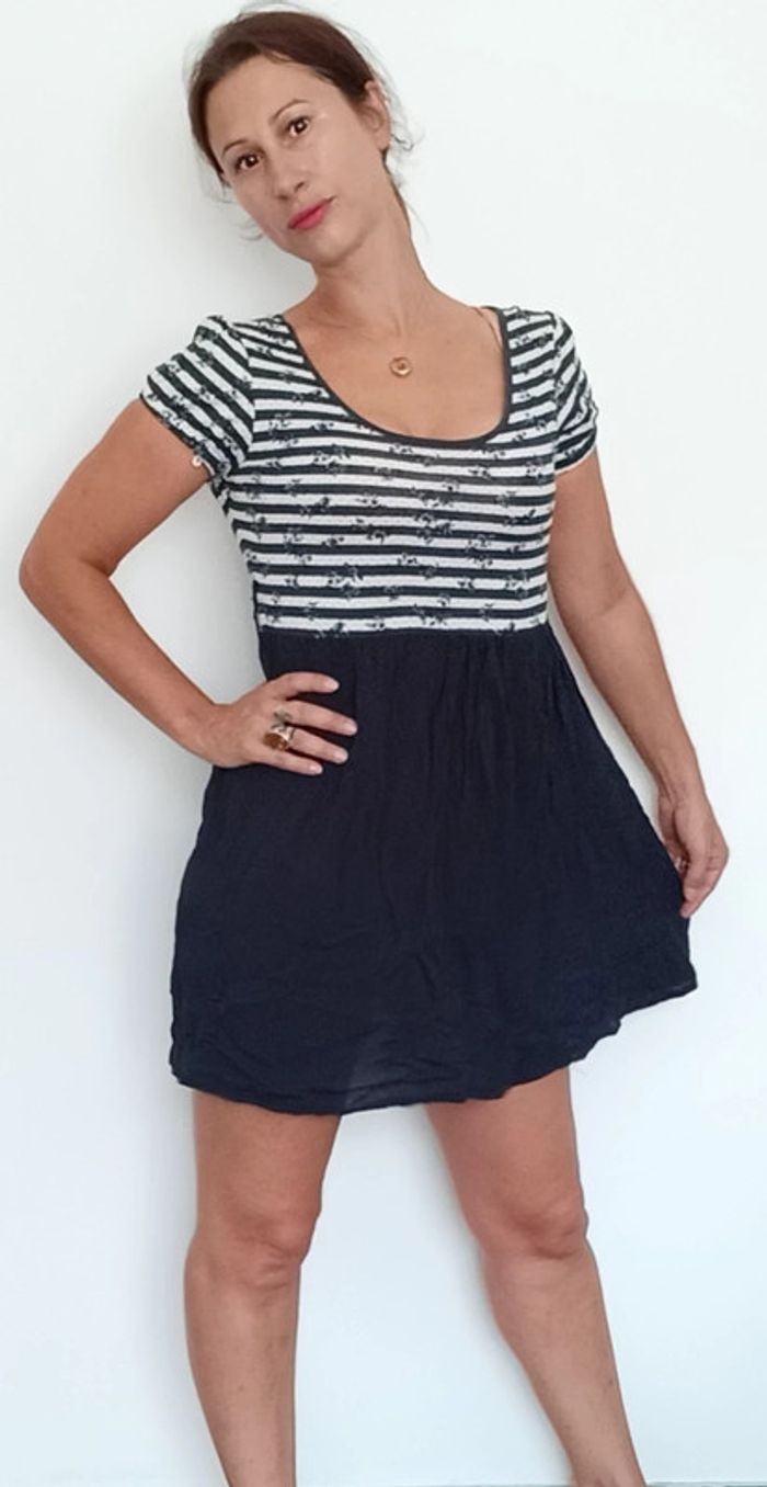 Robe courte marinière fleurie - photo numéro 1