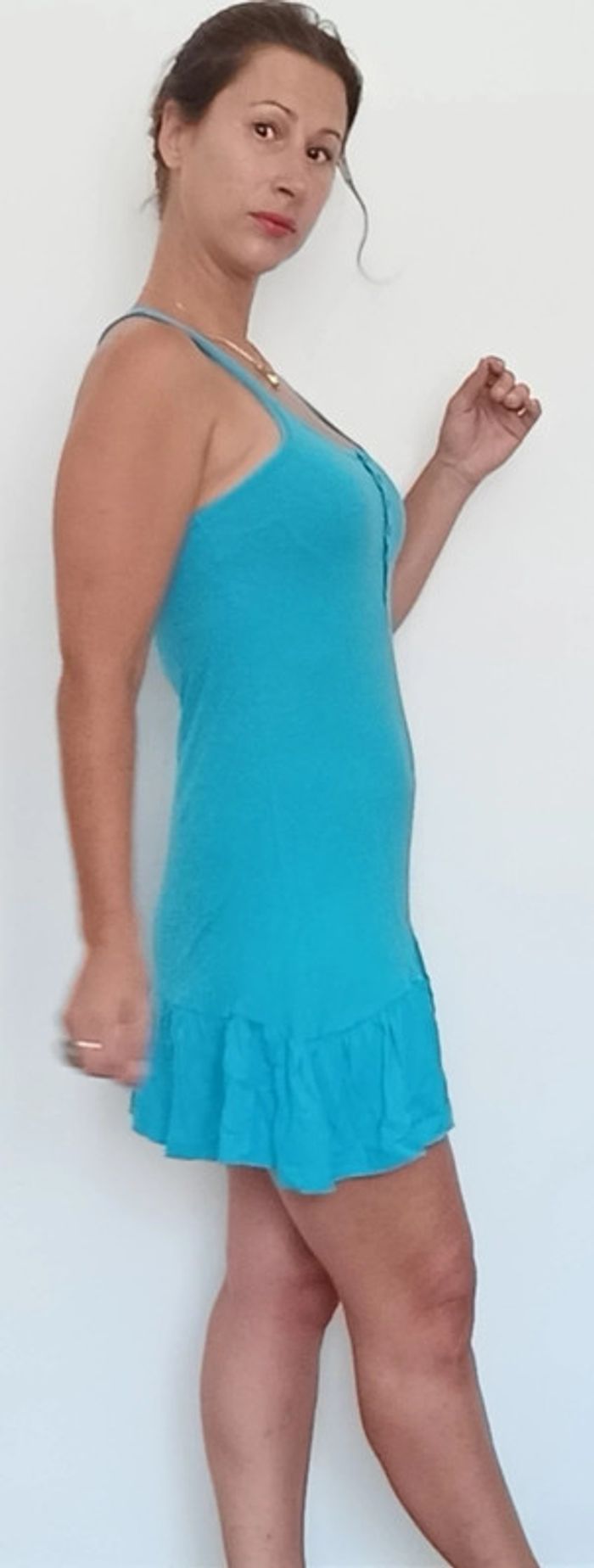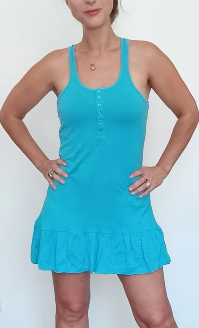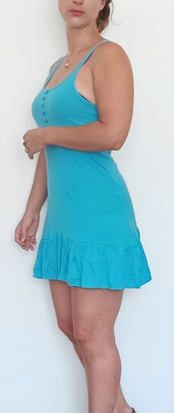 Forme débardeur Marcel derrière, jupe volant, confortable, neuve avec étiquette #robeturquoise #robeéténeuve #robecourte #robebleue #poupoupidoutu