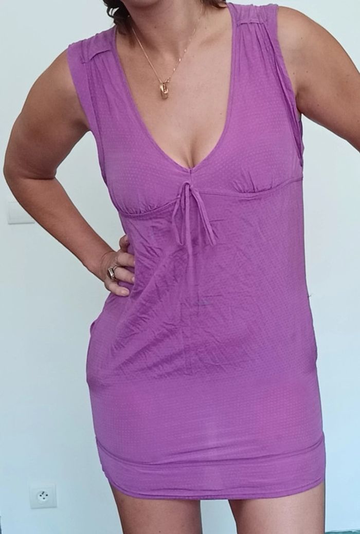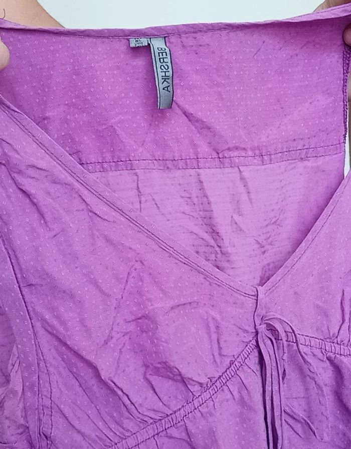 Jolie robe féminine à pois, matière style blouse ( pas extensible ! ) 38, trop petite pour moi ( je fais 38/40 en bas et 1m69) #robebershka38 #robebershka #robecourte38 #robeviolette38 #robeapois #bershka #poupoupidou38