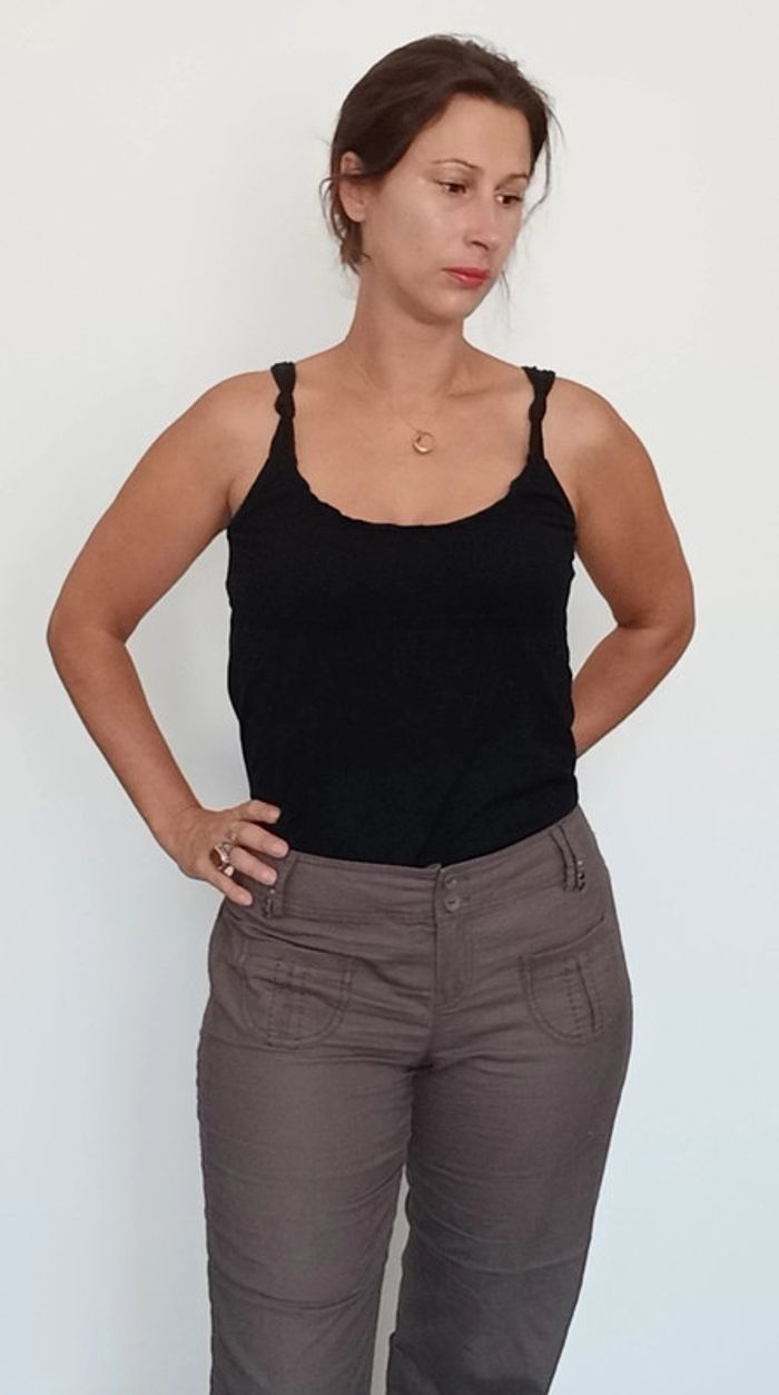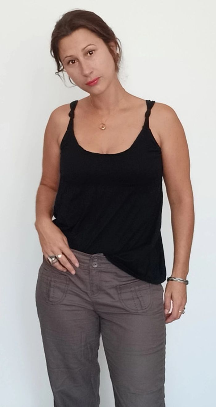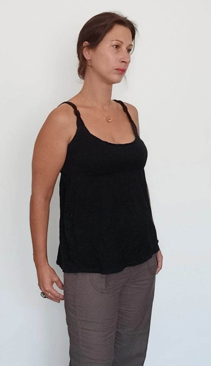 Détails bretelles croisées, décolleté arrondi, fluide et confortable, taille 38/40 #topnoir3840 #topnoir38 #topdecolletérond #debardeurnoir38
