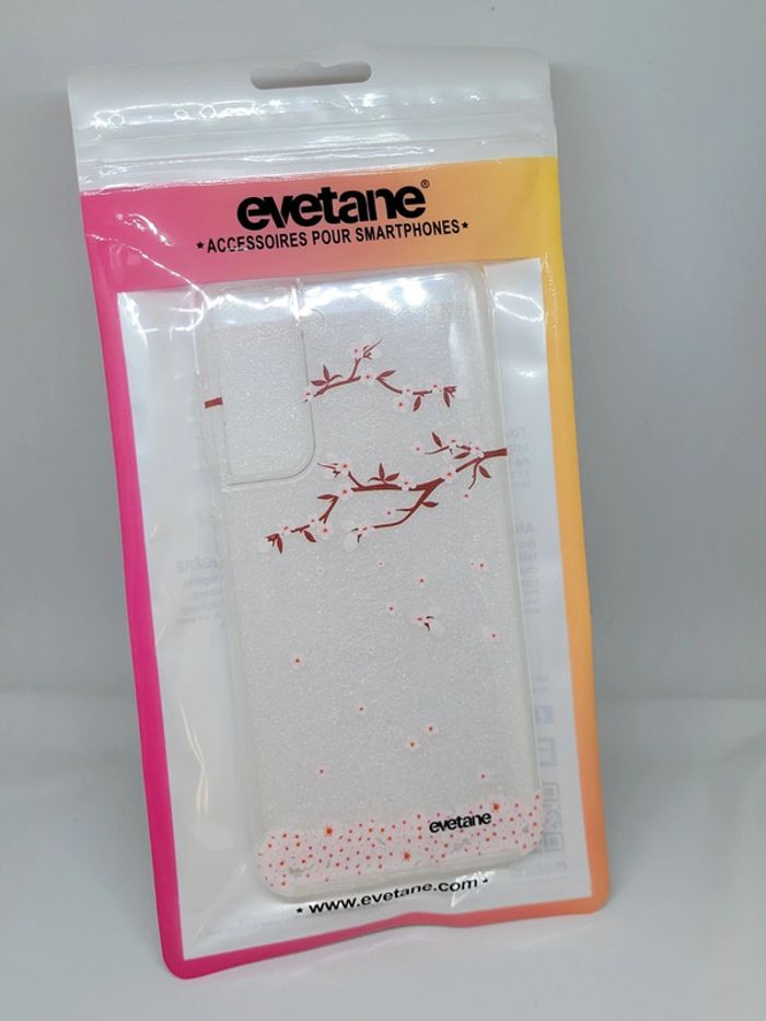 Neuve sous blister. Erreur lors de ma commande. Coque transparente et fleurs de cerisier. Vendue avec vitre Anti rayures