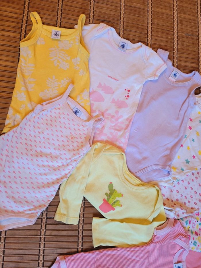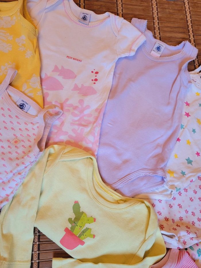 Lot 10 bodies été en très bon état. Un bodie présenté une mini tâche cf photo. Certains ont été + portés que d'autres. Un manches longues Petit bateau, absorba, lupilu #yurikofilletaille12mois