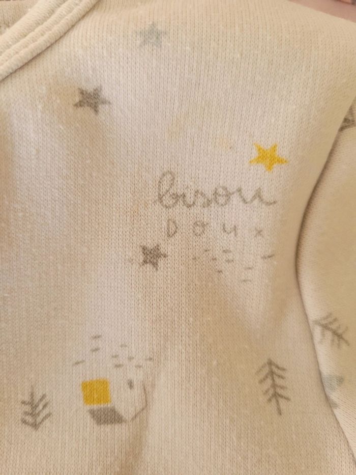 Pyjama pieds nous Très bon état sauf quelques pins tâches bisbilles sur photo Se voit presque pas #yurikofilletaille12mois