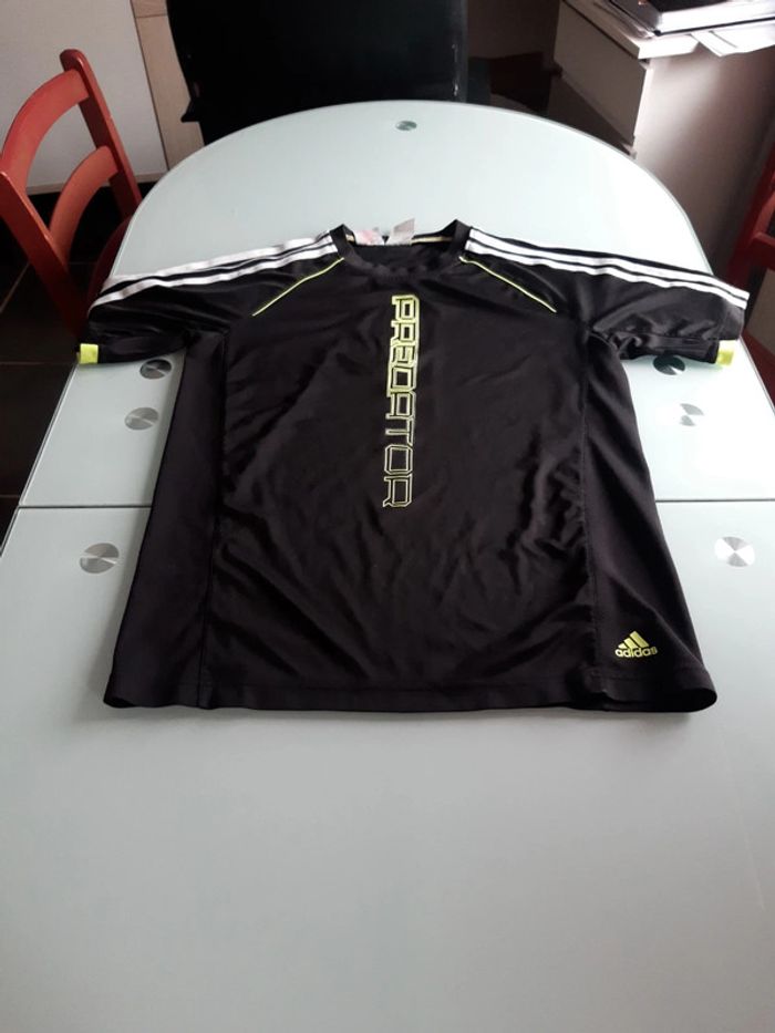 Polyester, noir et jaune fluorescent 2 fils tirés voir photo #vanessavadhommes #adidas16ans #tshirt16ans