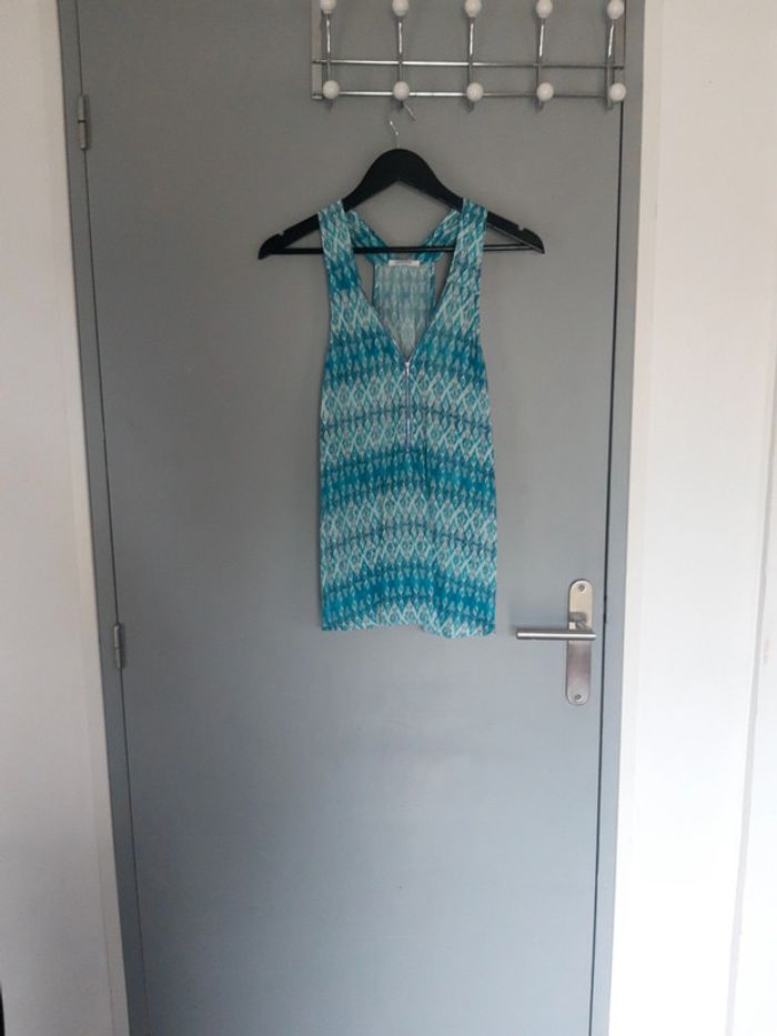 Top bleu et turquoise avec fermeture éclair sur le devant Promod Taille 36 #vanessavadfemme36 #promod36 #toppromod36 #hautfermetureeclair
