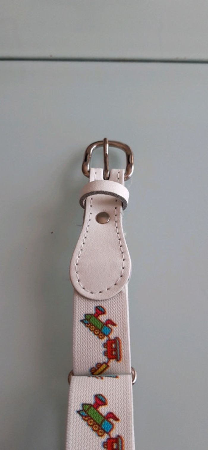Ceinture blanche avec véhicules Cuir de vachette Ajustable Longueur 50cm #vanessavadaccessoiresenfant #ceinturegarcon #ceinturecuirdevachette