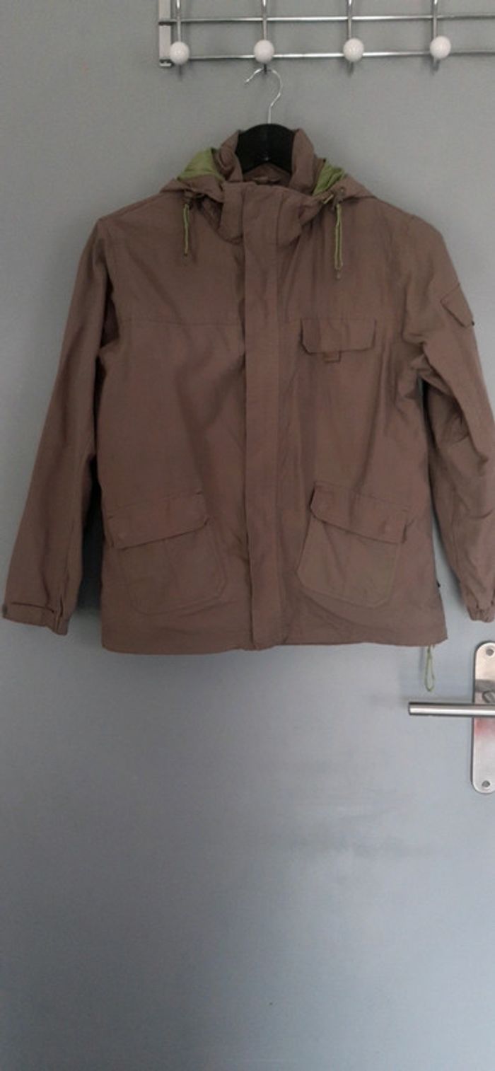 Marron et verte Capuche amovible, un côté un peu abîmé, légèrement déteint voir photo #vanessavad12ans #gosport12ans #vestecapuche12ans #vestelegere12ans #vestecoupevent12ans