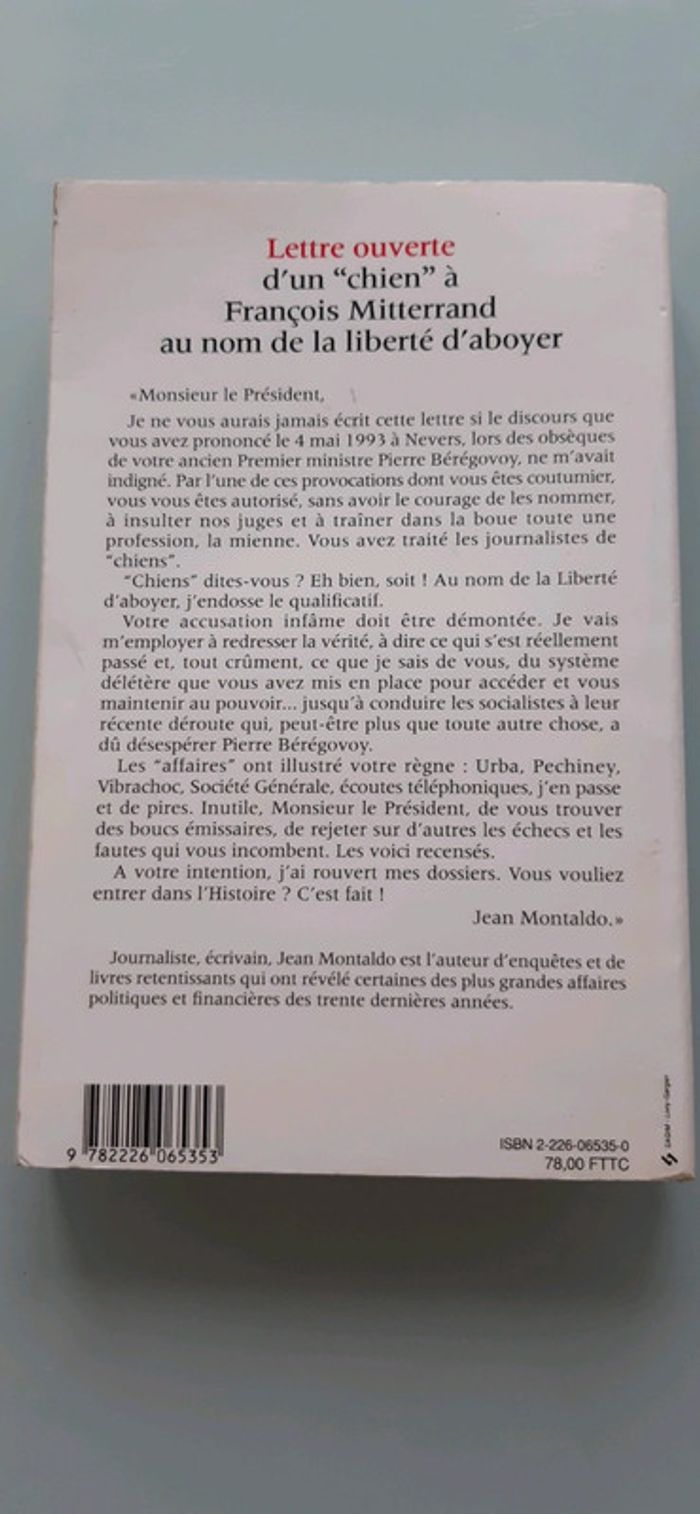 Lettre ouverte d'un "chien" à François Mitterrand au nom de la liberté d'aboyer Jean Montaldo #vanessavadlivresadulte #jeanmontaldomitterrandetles40voleurs #jeanmontaldo #collectionlettreouverte #lettreouverte #editionsalbinmichel