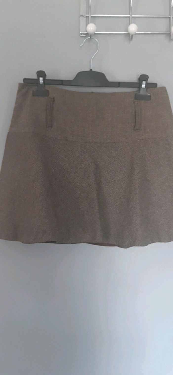 Mini jupe marron style Tweed avec doublure jupon Fermeture zippée au dos 30% laine #vanessavadfemme40 #camaieu #camaieu40 #jupetweed40 #jupelaine40