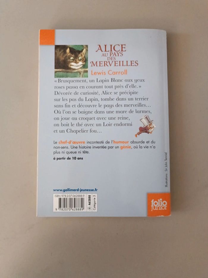 Alice au pays des merveilles de Lewis Carroll Folio junior numéro 437. Poids : 135 grammes. Voici le lien pour voir tous mes livres : #romain75015_Livres_enfants. Envoi rapide et soigné bien protégé pour le transport.