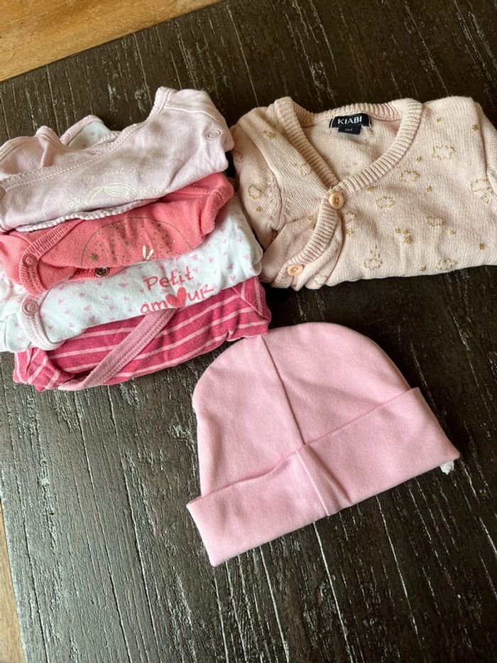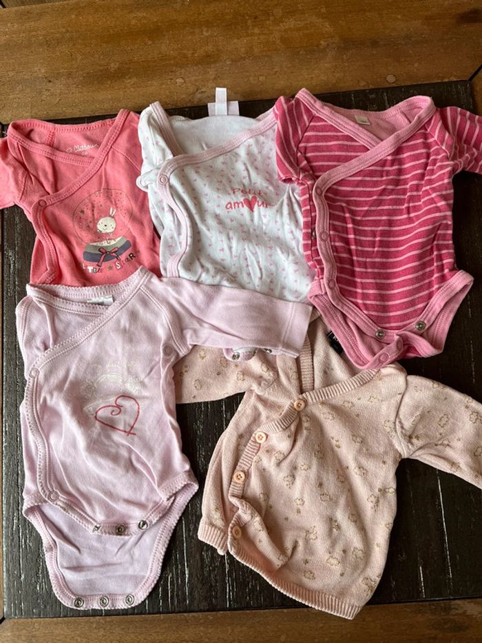 👶 Lot naissance 4 bodies et 1 brassière 0 mois + bonnet Envoi rapide et soigné ! N’hésitez pas à aller voir dans mon dressing j’ai plein de choses ☺️