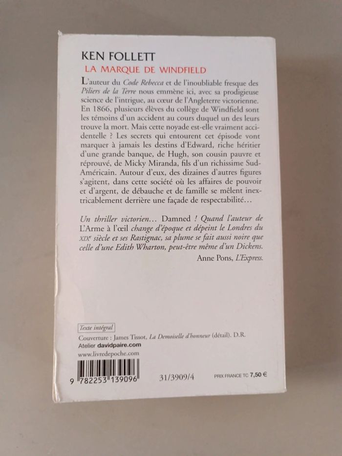 Voici le lien pour voir tous mes livres : #romain75015_Livres. Poids : 318 grammes. Prix neuf : 7,5 euros. La marque de windfield Ken Follett.