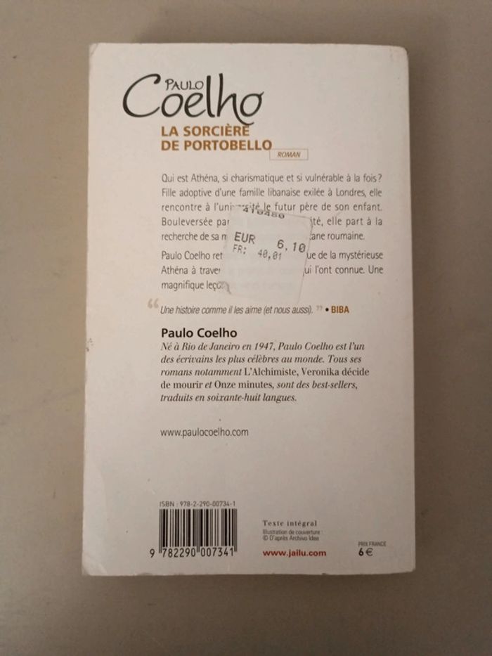 Voici le lien pour voir tous mes livres : #romain75015_Livres. Poids : 156 grammes. Prix neuf : 6 euros. La sorcière de portobello Paulo Coelho