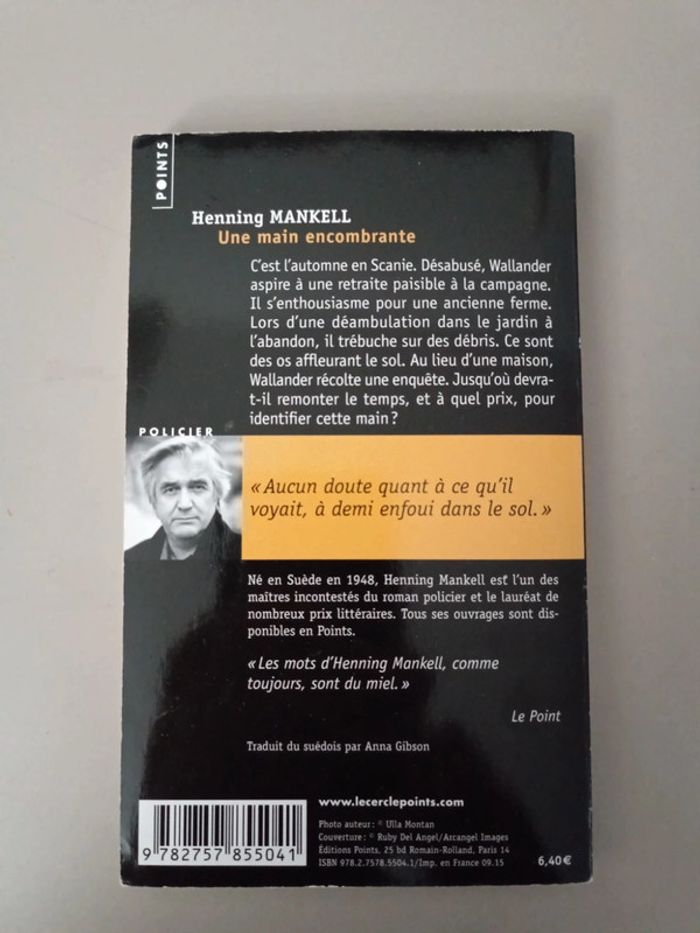 Voici le lien pour voir tous mes livres : #romain75015_Livres. Poids : 100 grammes. Prix neuf : 6,4 euros. Policier. Une main encombrante Henning mankell