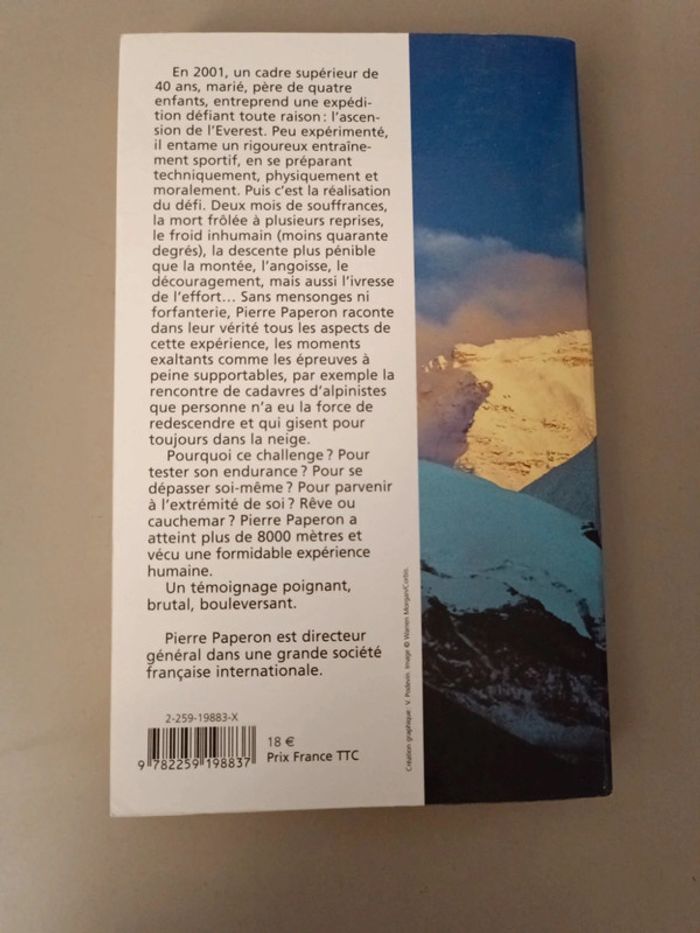 Voici le lien pour voir tous mes livres : #romain75015_Livres. Poids : 364 grammes. Prix neuf : 18 euros. Livre j'ai vécu l'Everest pierre paperon.