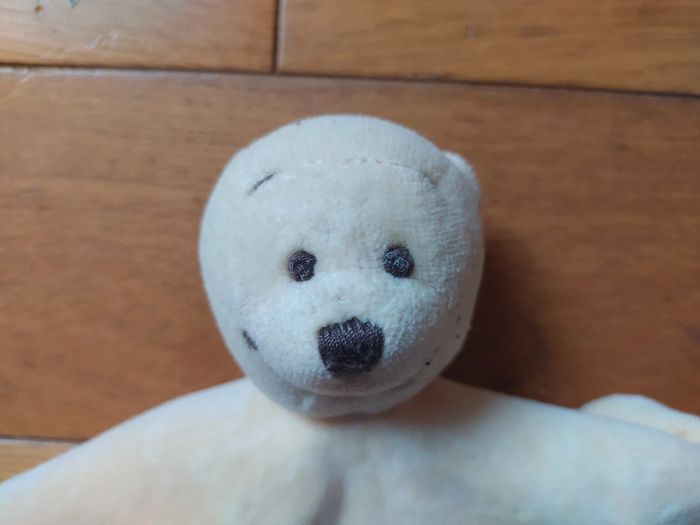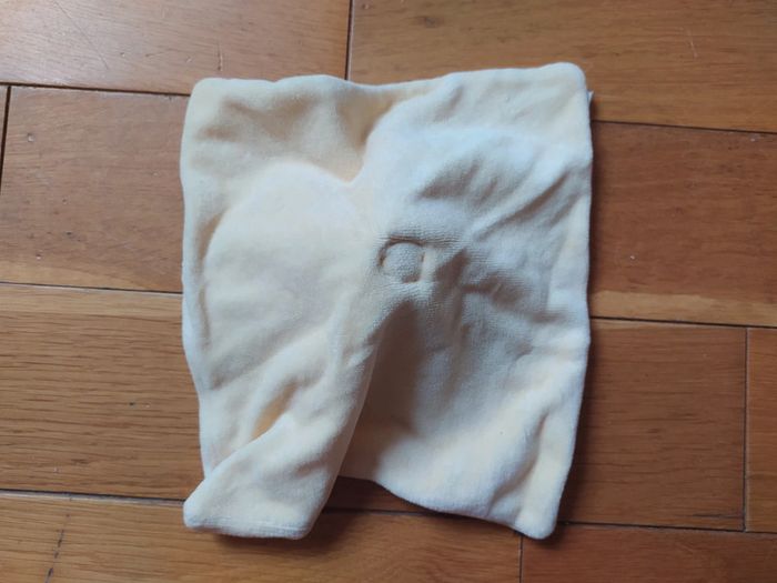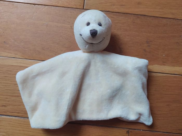 Voici le lien pour voir tous mes doudous : #romain75015_Doudous Doudou ourson orange. Il y a une tâche (voir photo) que je n'ai pas essayé d'enlever.
