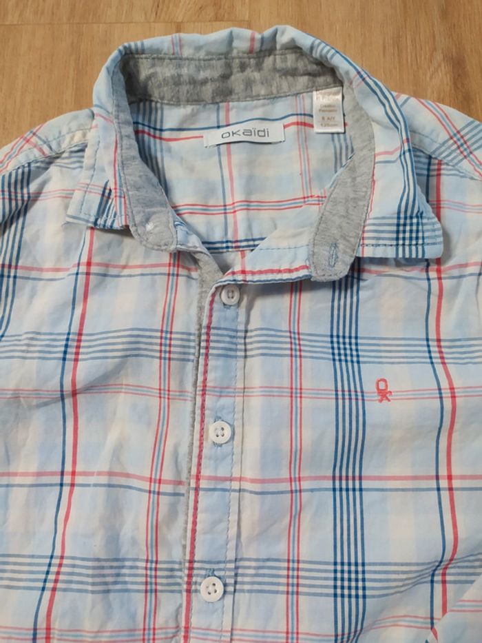 Chemise à carreaux Okaïdi 8 ans blanc bleu rouge - photo numéro 1