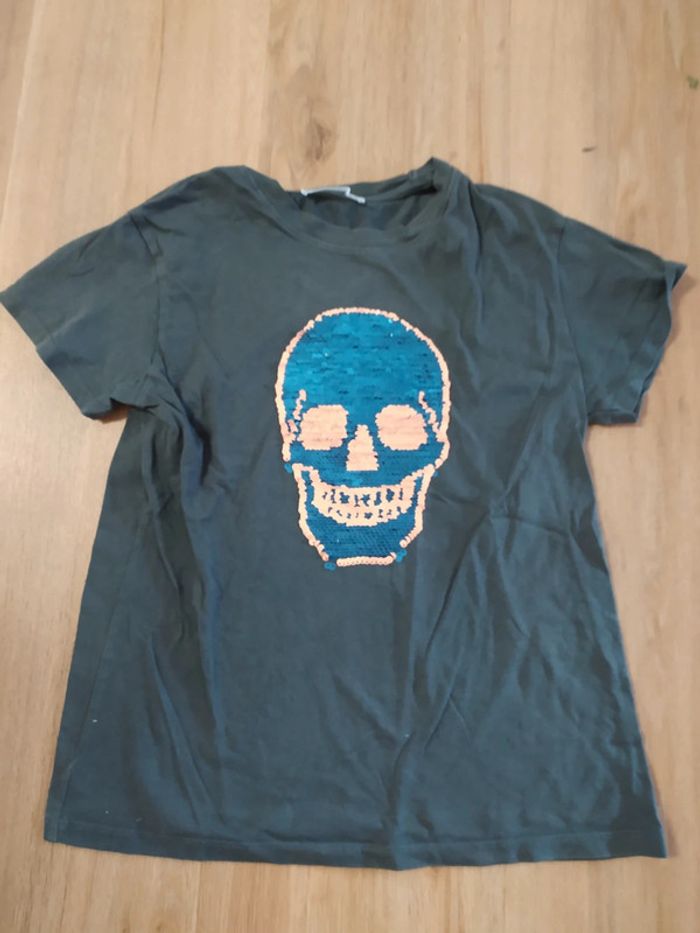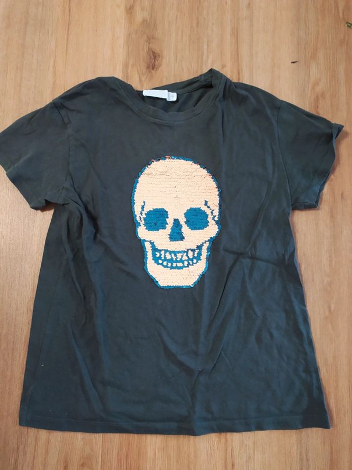 T-shirt h&m 8 ans tête de mort à paillettes réversibles - photo numéro 1