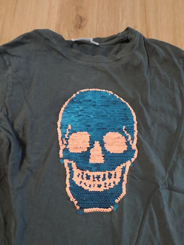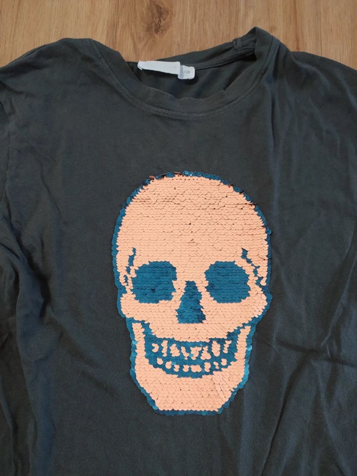 T-shirt h&m 8 ans tête de mort à paillettes réversibles - photo numéro 2