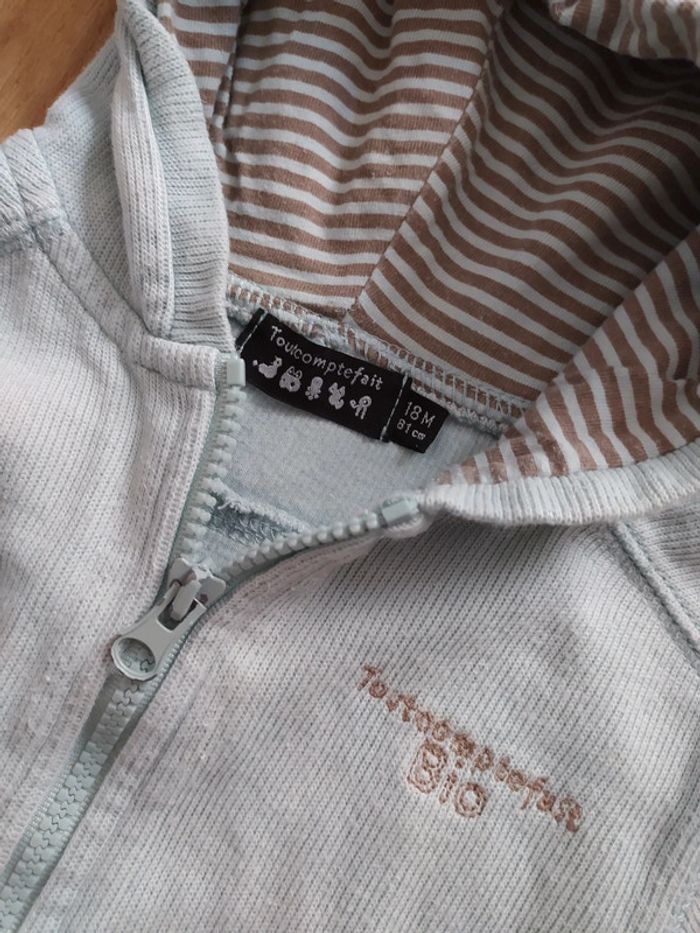 Voici le lien pour voir tous mes vêtements 18 mois : #romain75015_Taille_18mois Sweat Gillet capuche zippé tout compte fait bio 18M bleu