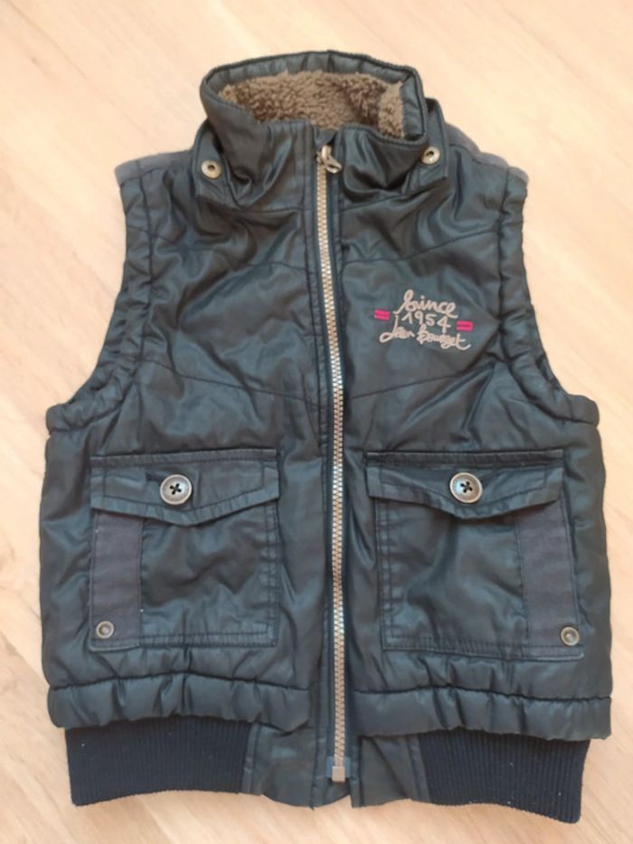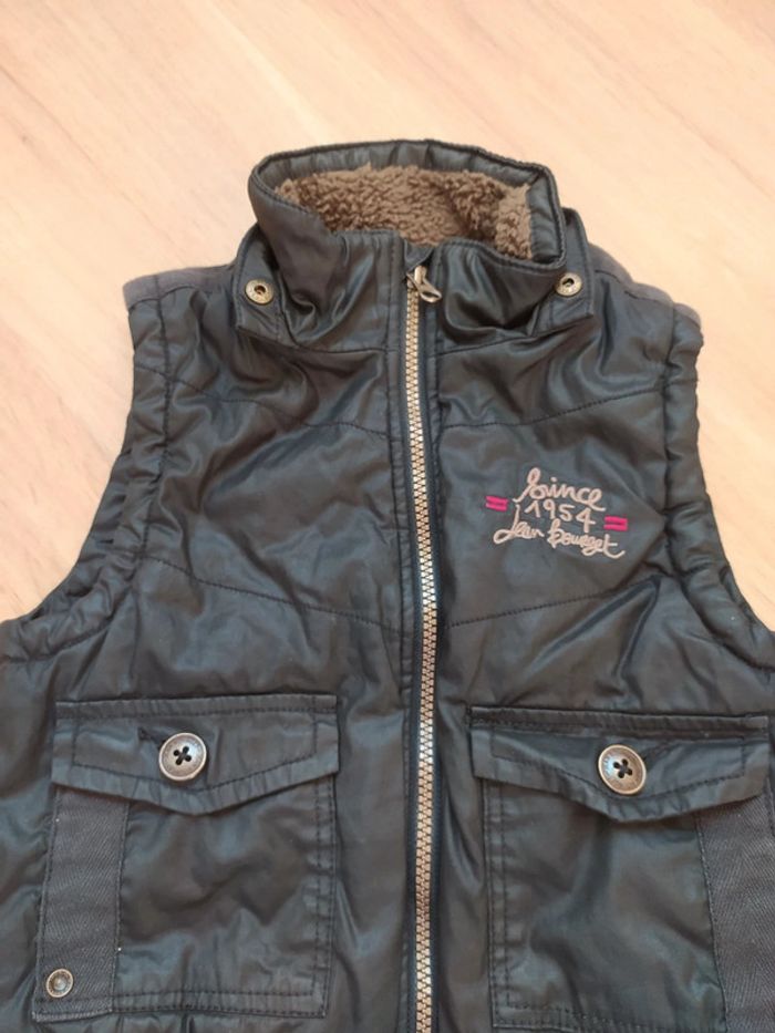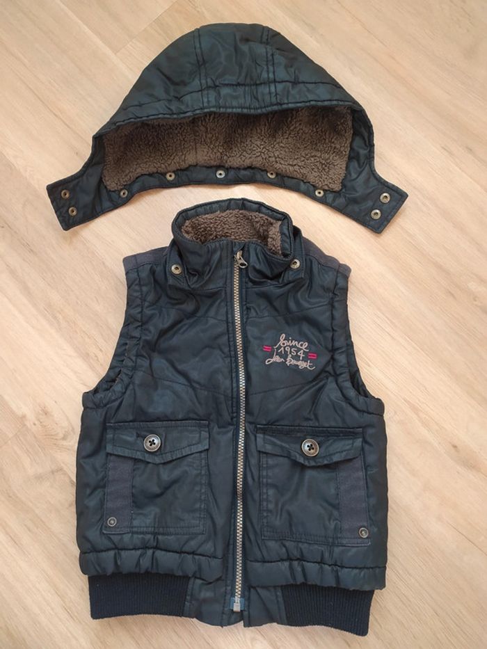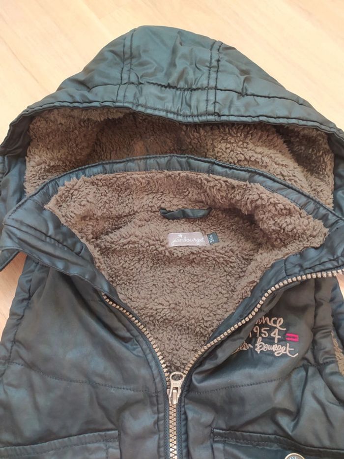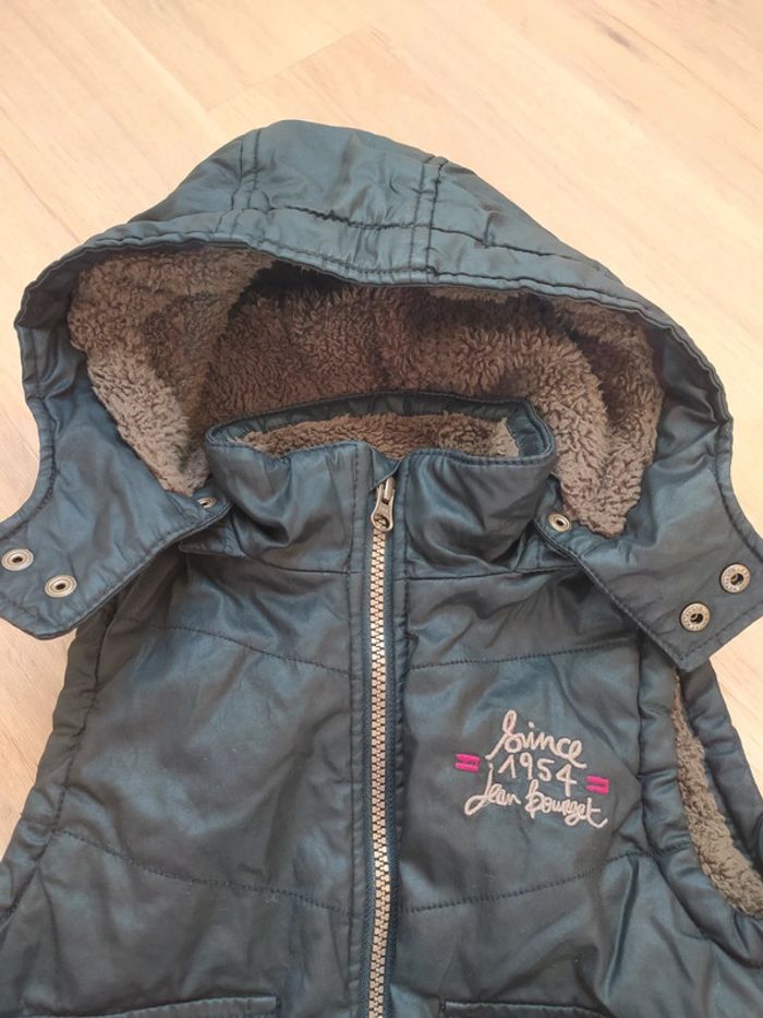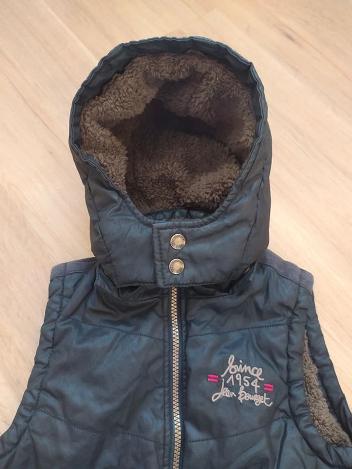 Voici le lien pour voir tous mes vêtements 5 ans : #romain75015_Taille_5ans Blouson sans manche avec capuche rétractable Jean Bourget 5 ans. La capuche peut s'enlever facilement avec des pressions solides. Il est très chaud fourré à l'intérieur . Très pratique pour les enfants (évite trop épaisseur sur les bras l'hiver pour jouer). Très bonne qualité.