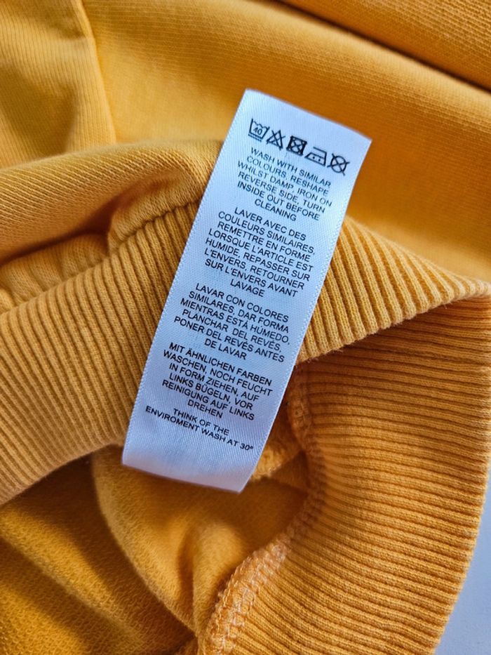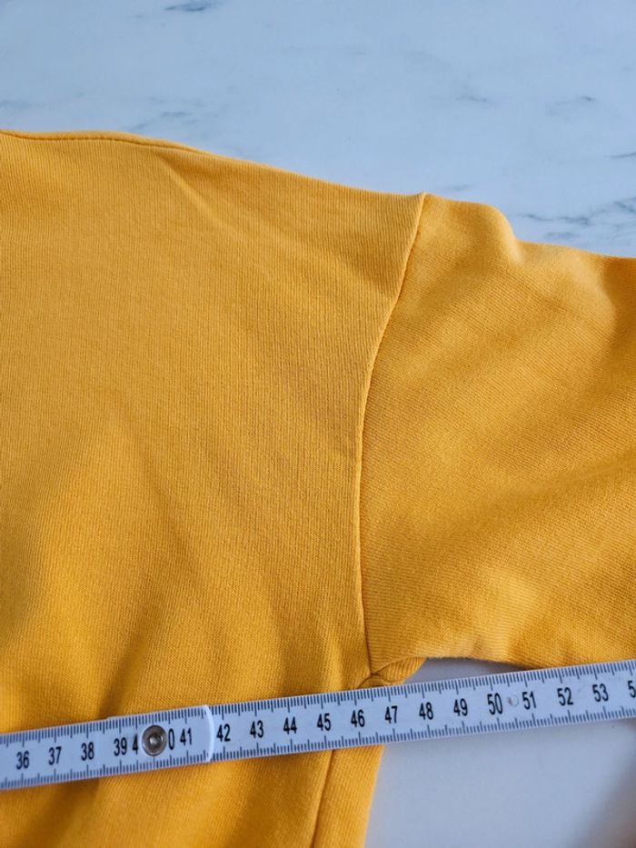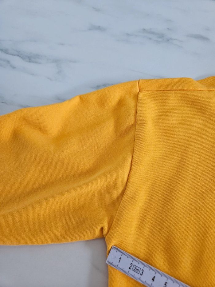 Pull court jaune canari. Couleur comme l'étiquette du col. Il est en état impeccable et les dimensions se trouvent sur les photos