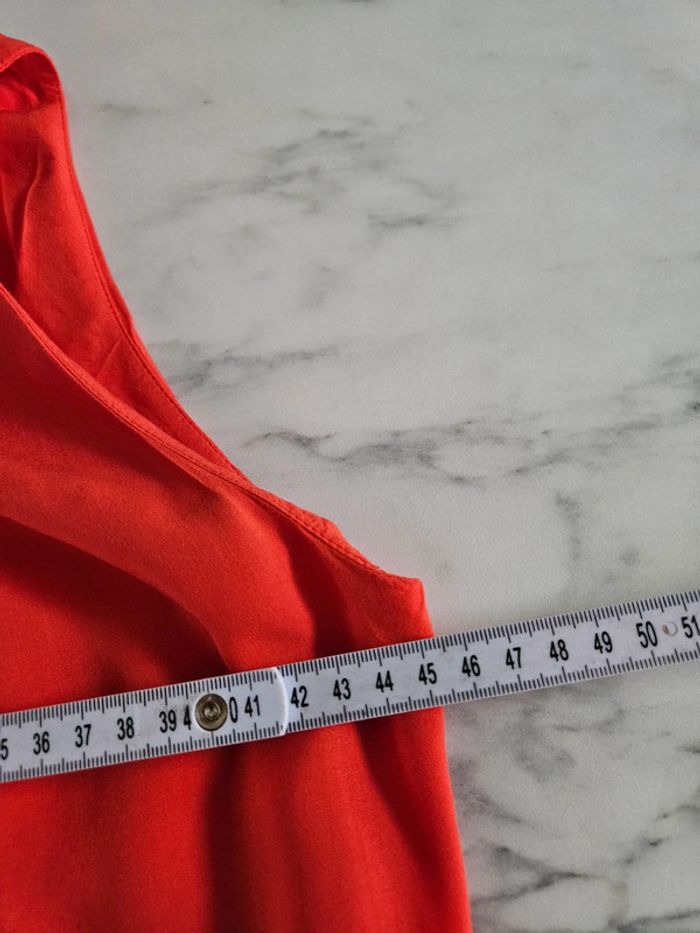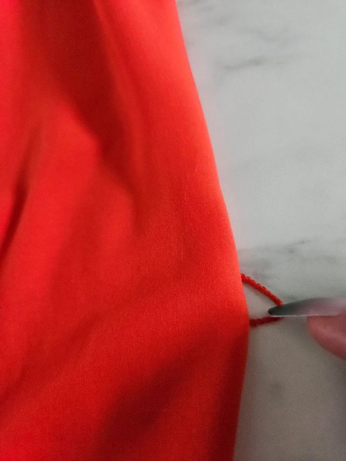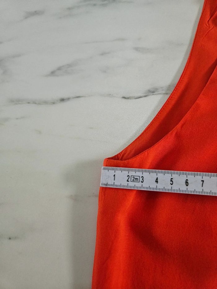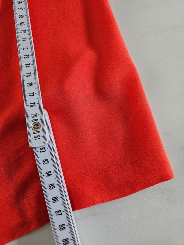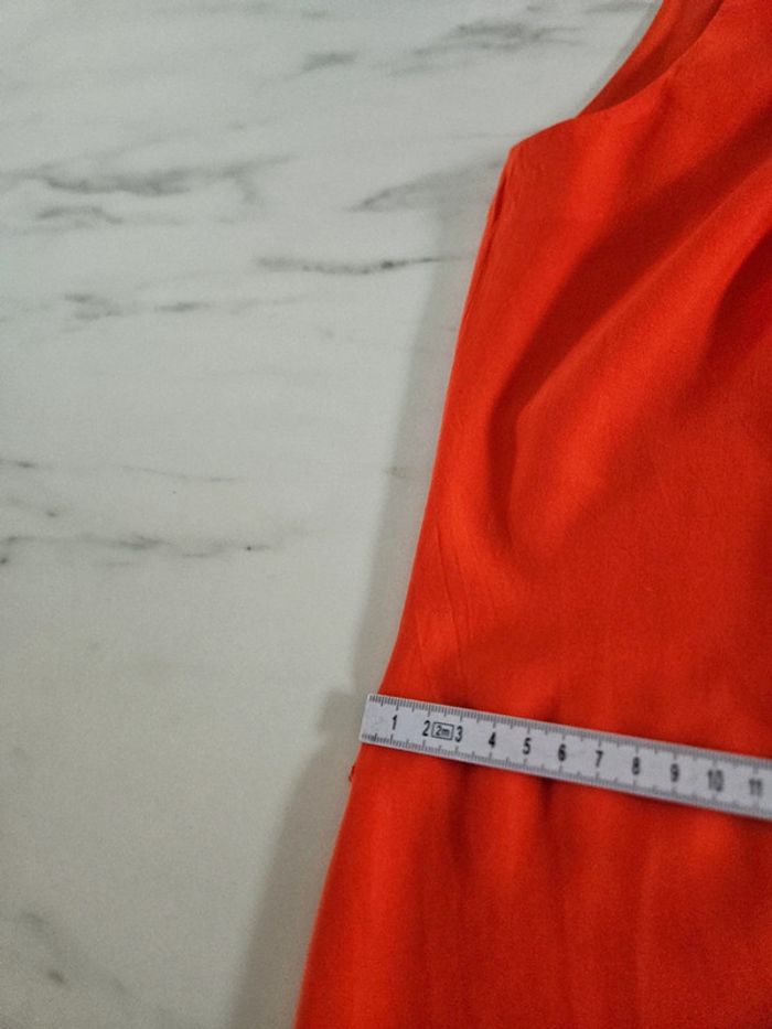 Robe toute légère 34 Elle est en parfait état mais manque la ceinture. Il y a toujours les passants pour la ceinture mais on peut facilement les couper. Orange comme la robe à plat. Et peut facilement convenir pour un S Dimensions sur les photos