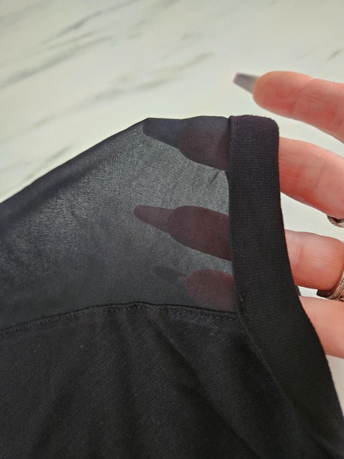 Bi matière. Coton légé et voile transparent. Pas d'autre étiquette mais il est en parfait état et les dimensions se trouvent sur les photos