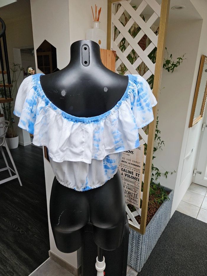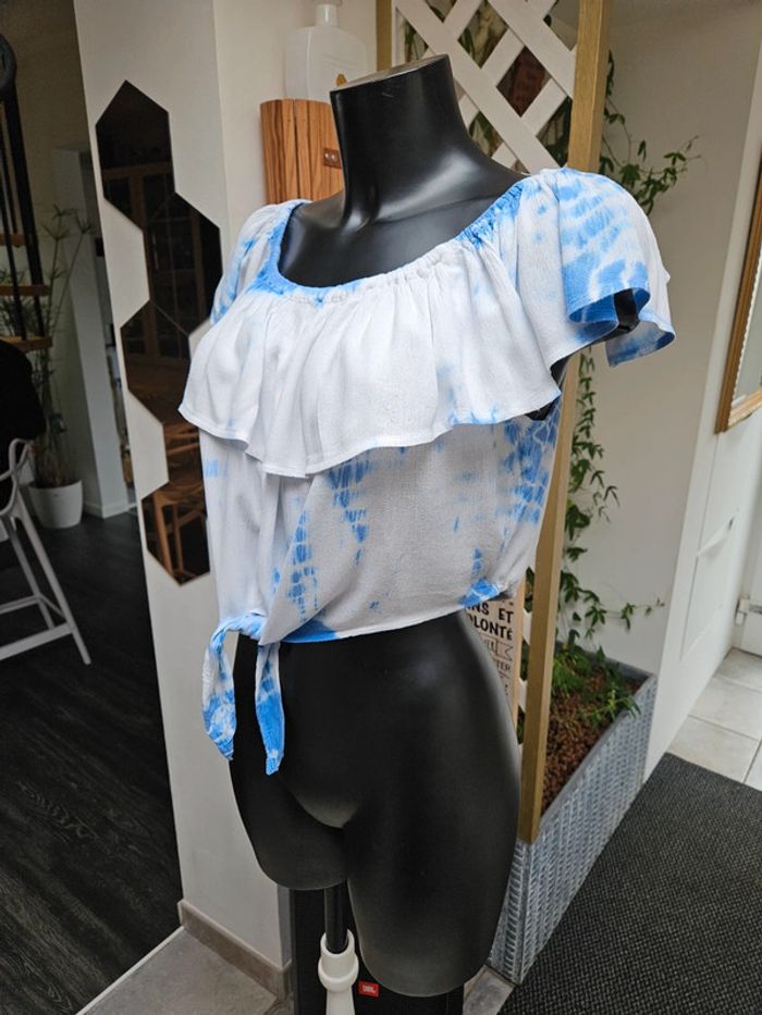 Tie dye blanc et beau à nouer sur le devant en parfait état