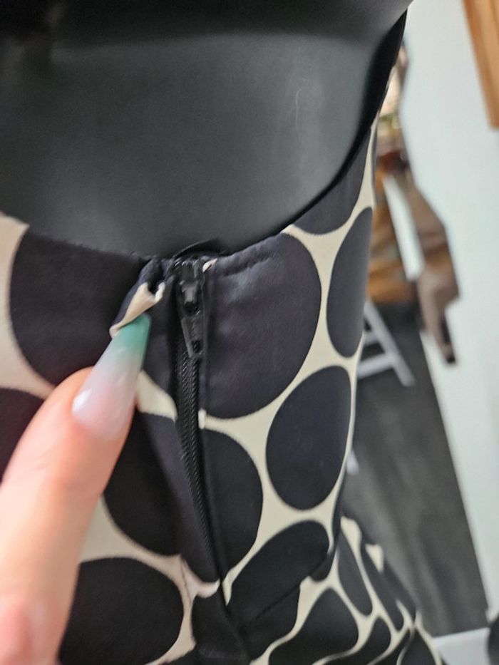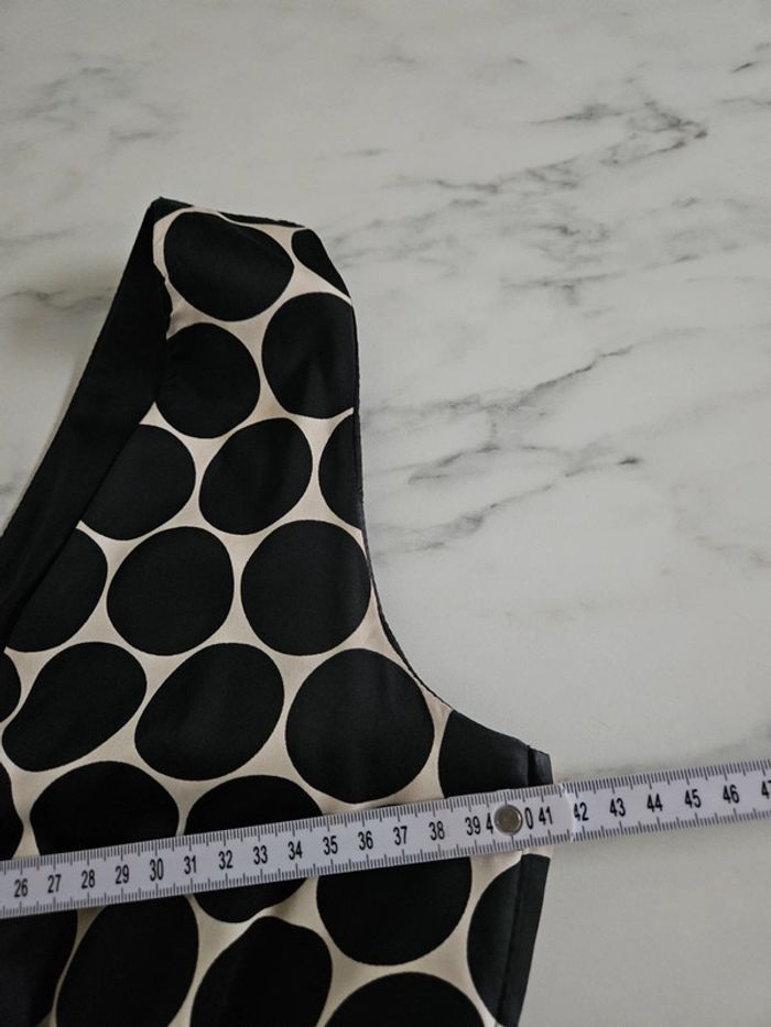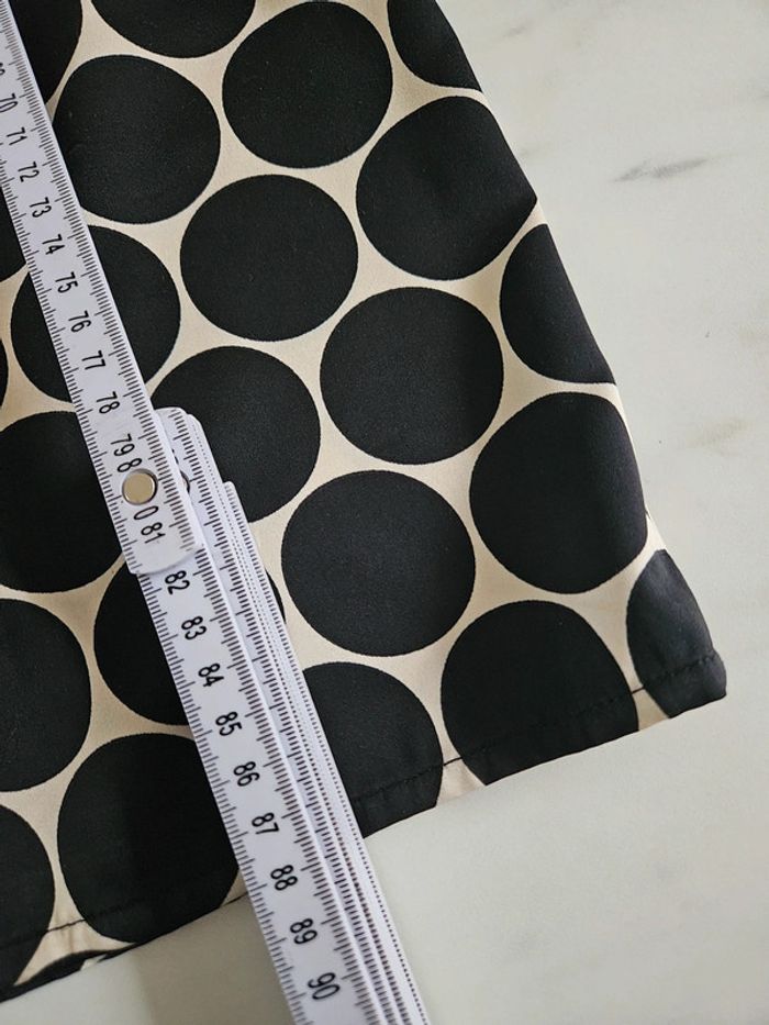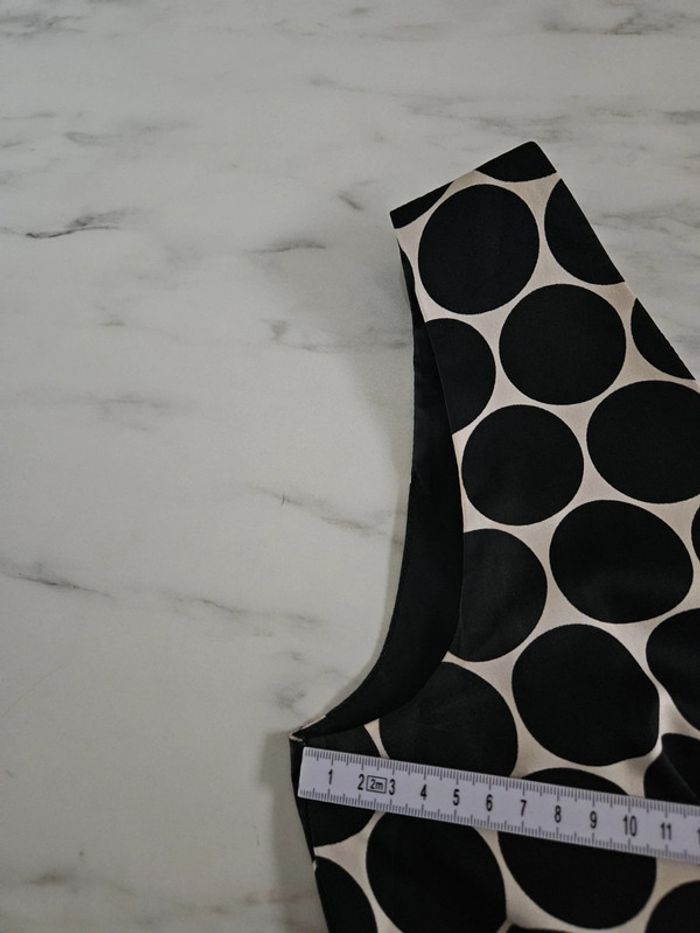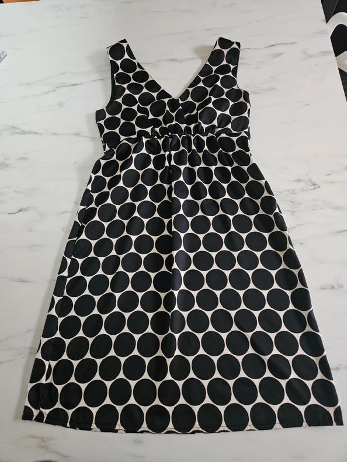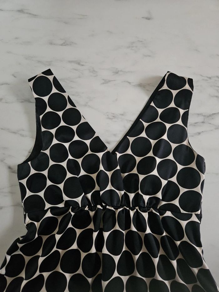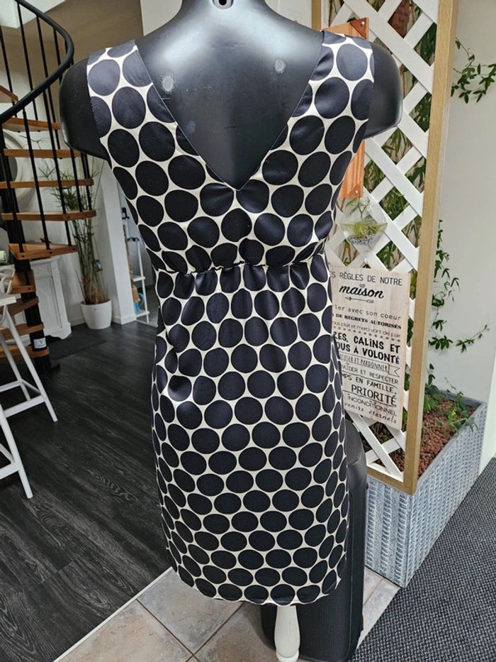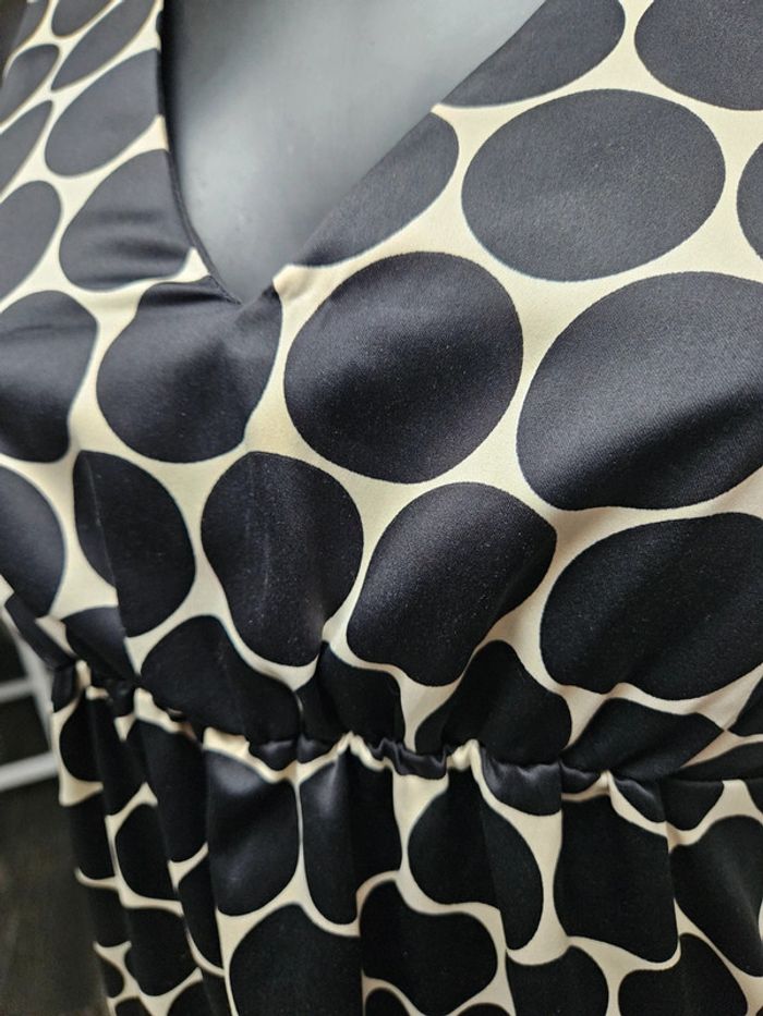 Robe toute légère matière satinée. Crème à ronds noir Elle est en état irréprochable. Dimensions sur les photos et l'élastique qui est en dessous de la poitrine est extensible au même niveau que les aisselles