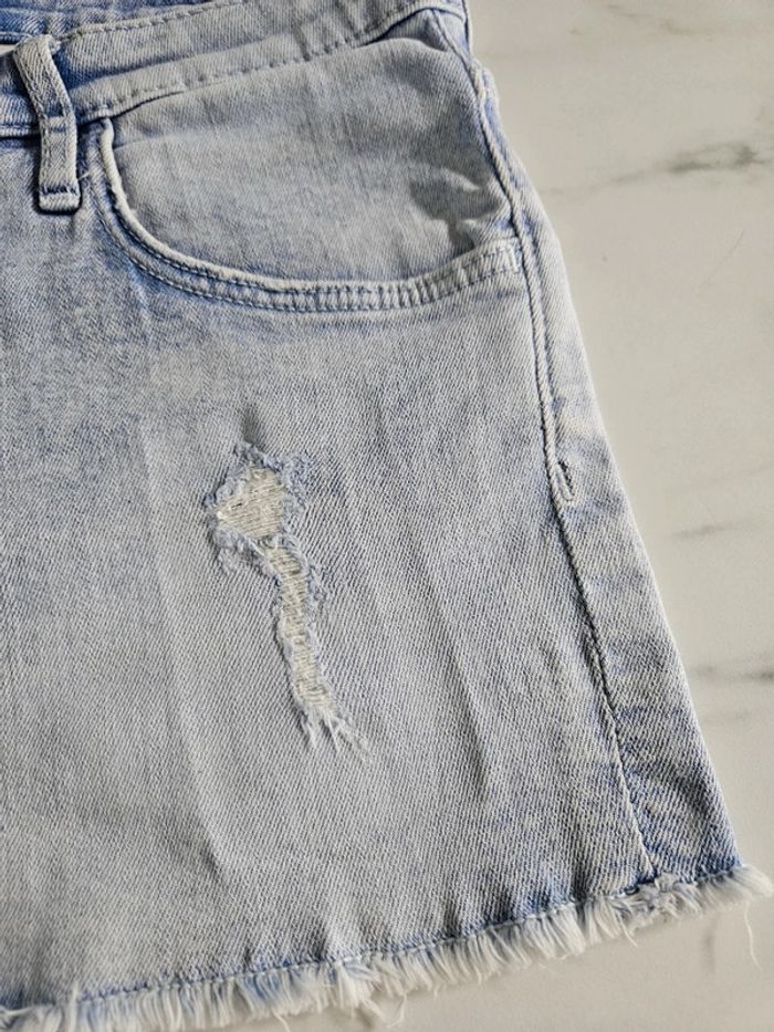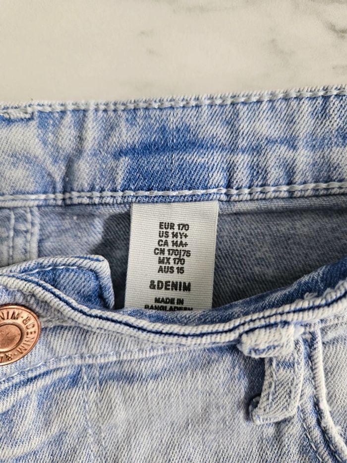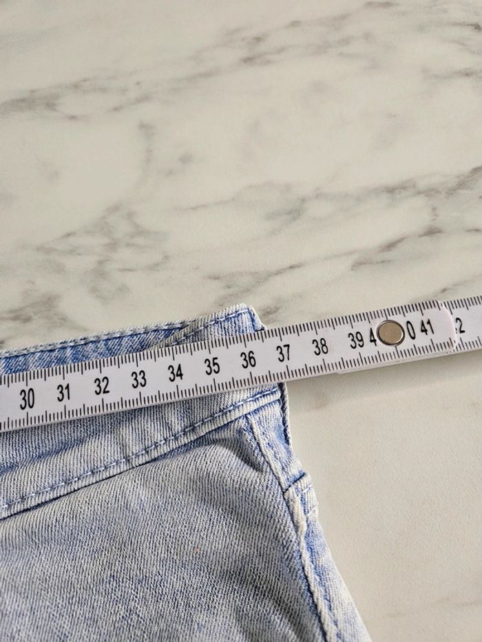 Il est en jeans souple un peu stretch. Convient pour taille S dimensions sur les photos. Porté mais il reste en très bon état