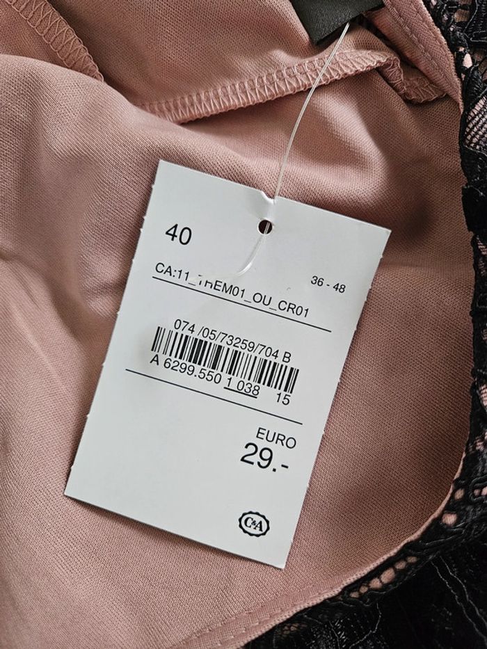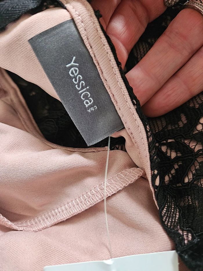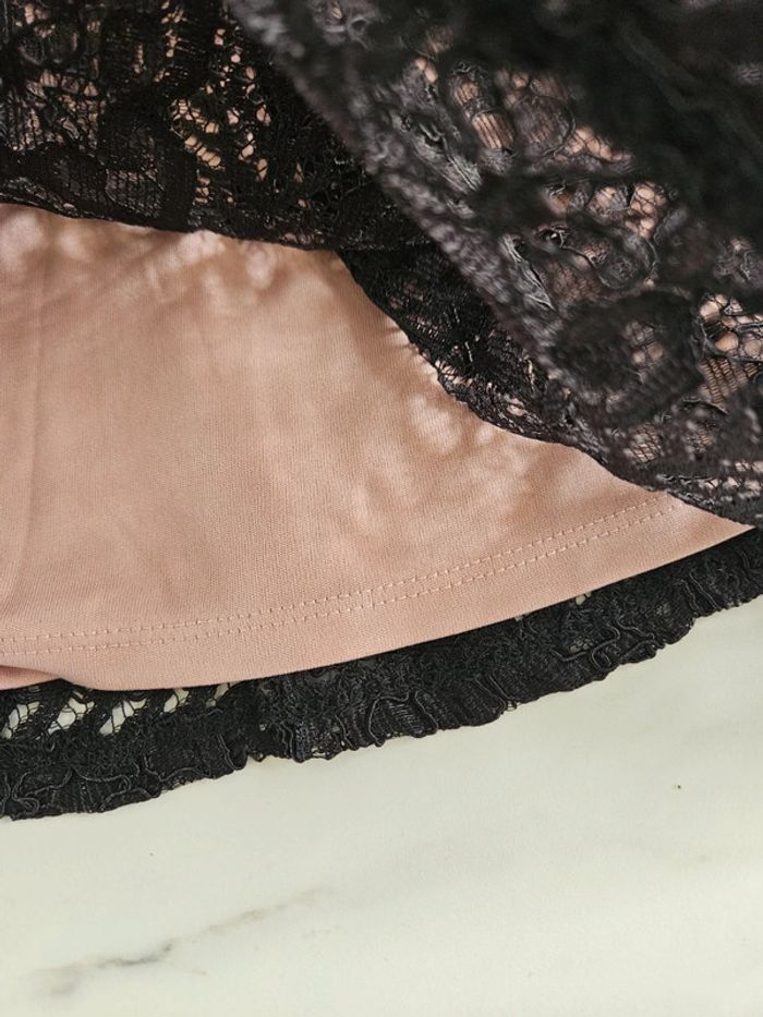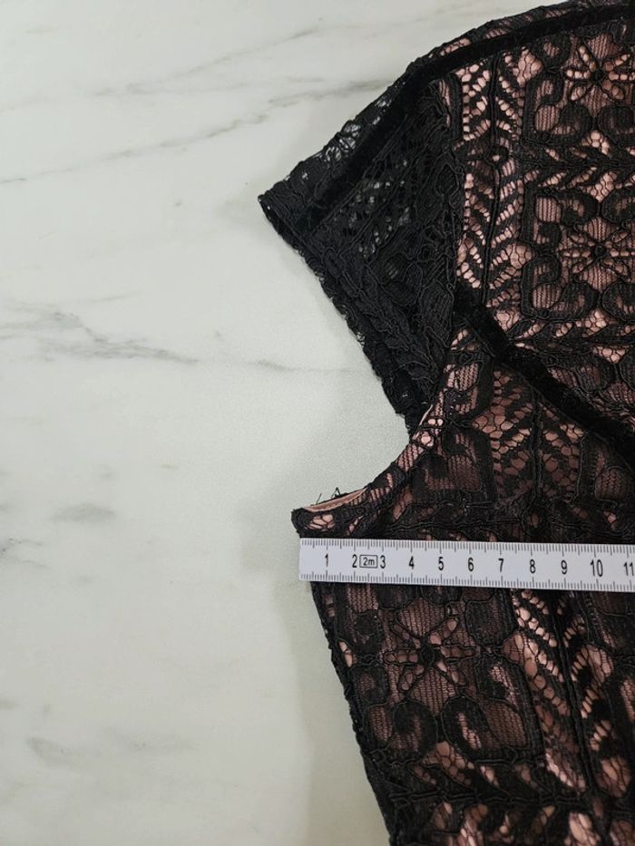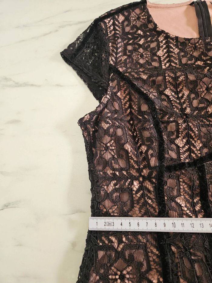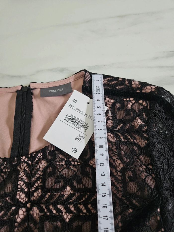 Robe neuve. Dentelle noir et doublure rose. Très chic. Près du corps sur le dessus et évasée sur le bas. Dimensions sur les photos