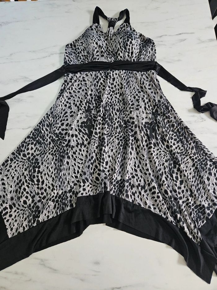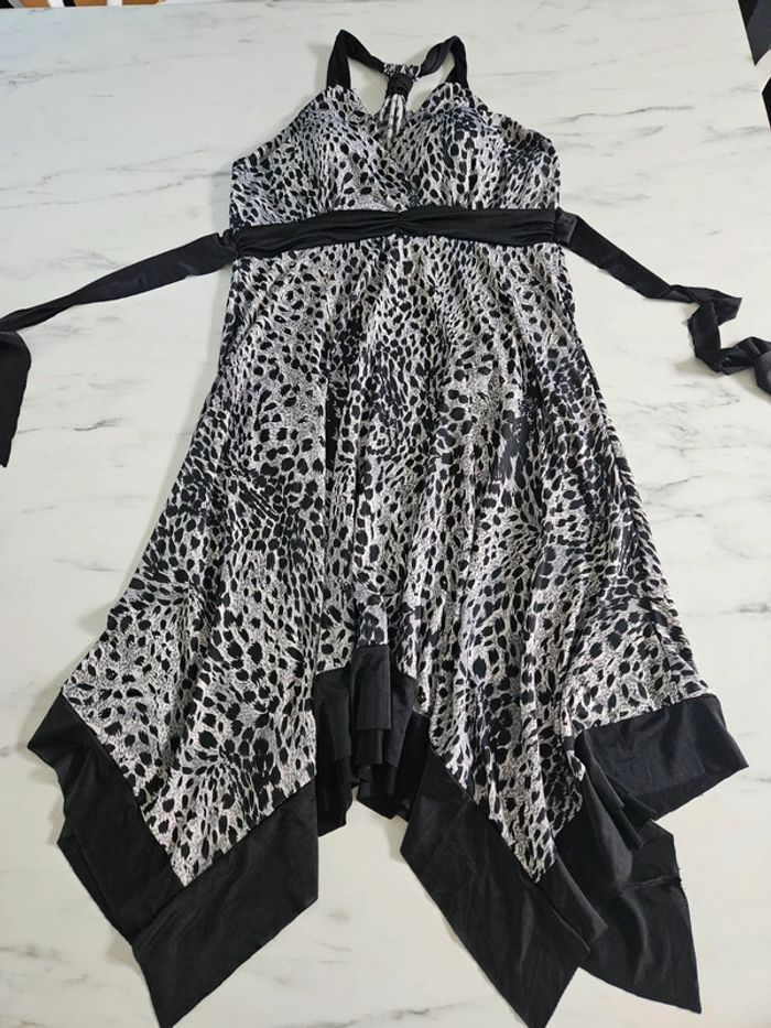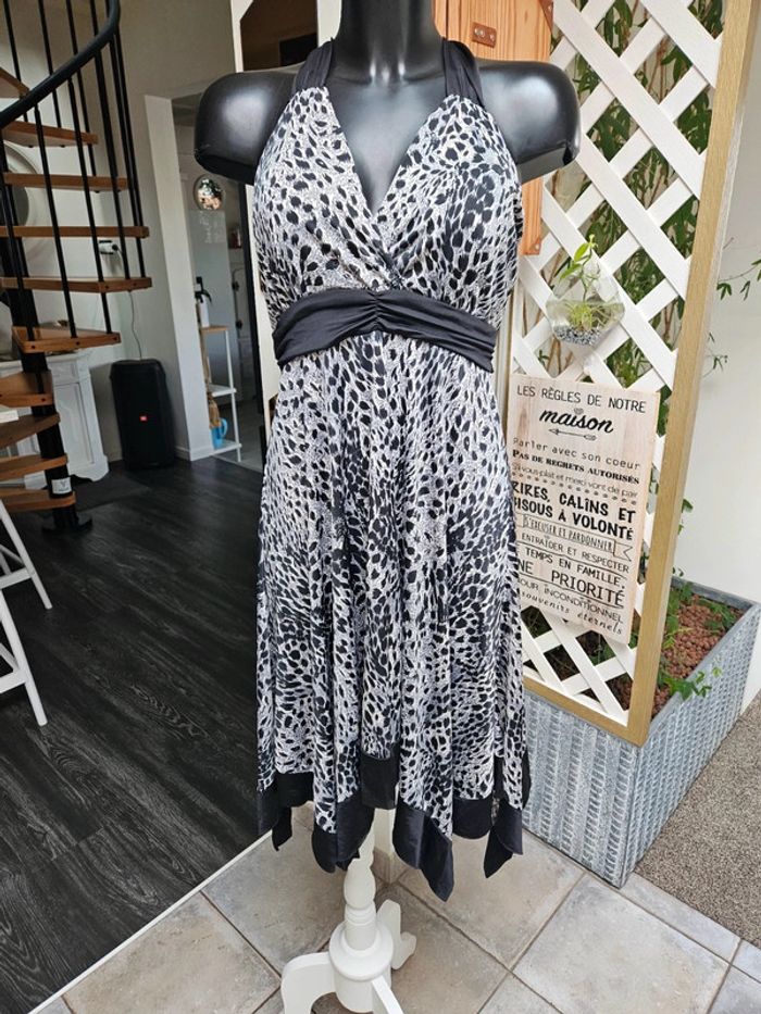 Robe fluide asymétrique. Portée en bon état. Poitrine rembouree. Pas d'étiquette de taille mais parfait pour une taille L
