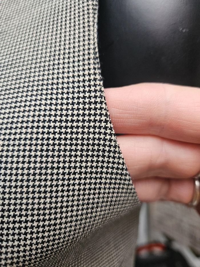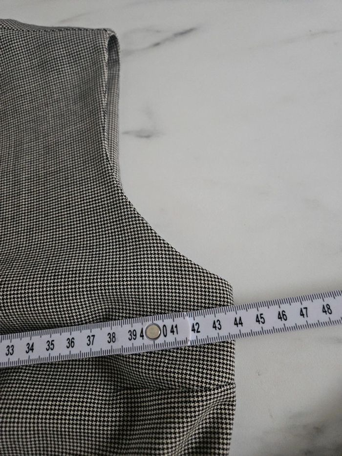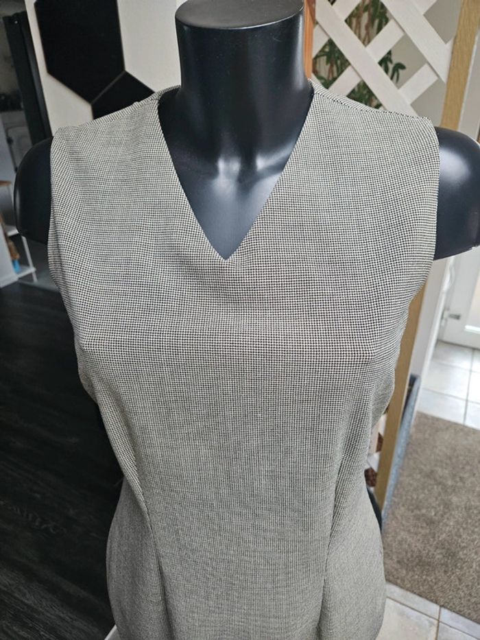 La robe en elle-même est en parfait état. Un ourlet vite fait bien fait à été réalisé afin d'y ajouter du poids sur le bas de la robe mais il tient il est bien fait et ça ne se voit pas porté. Je fais un grand 38 et elle m'allait parfaitement. J'ai mis les dimensions possible en photos et c'est vraiment une robe chic