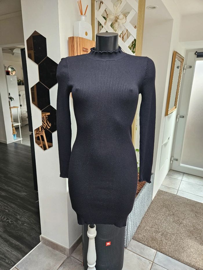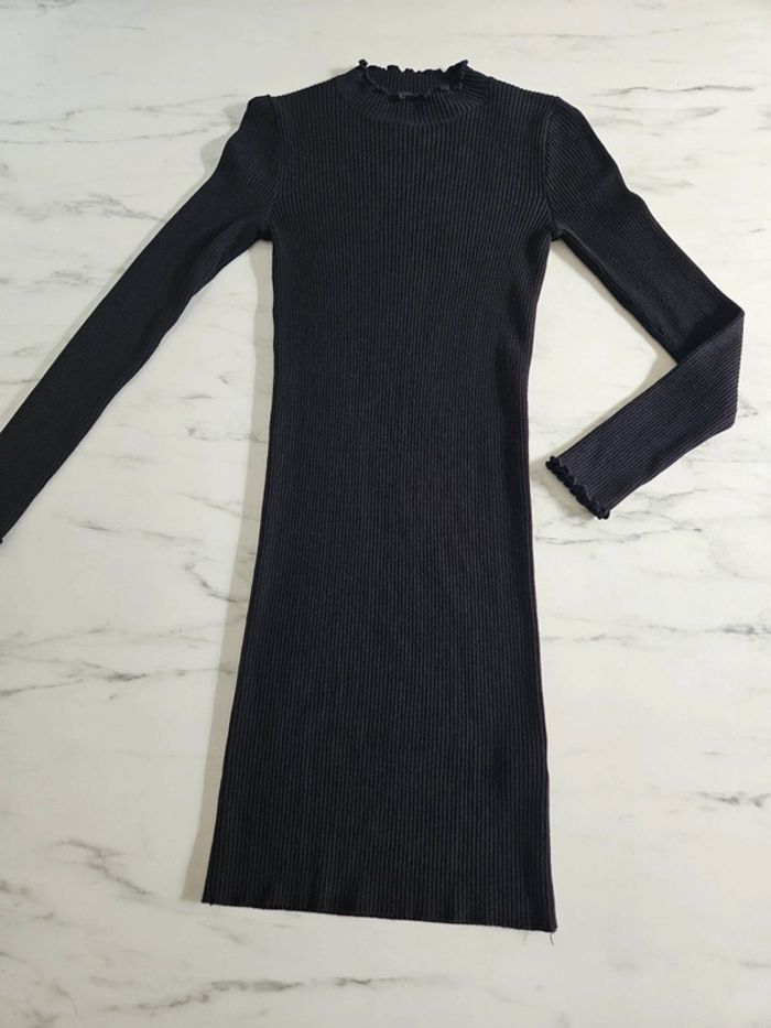 Robe col montant noir côtelée. Portée mais reste en parfait état. Matière extensible