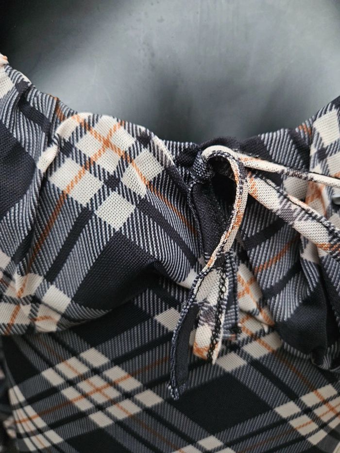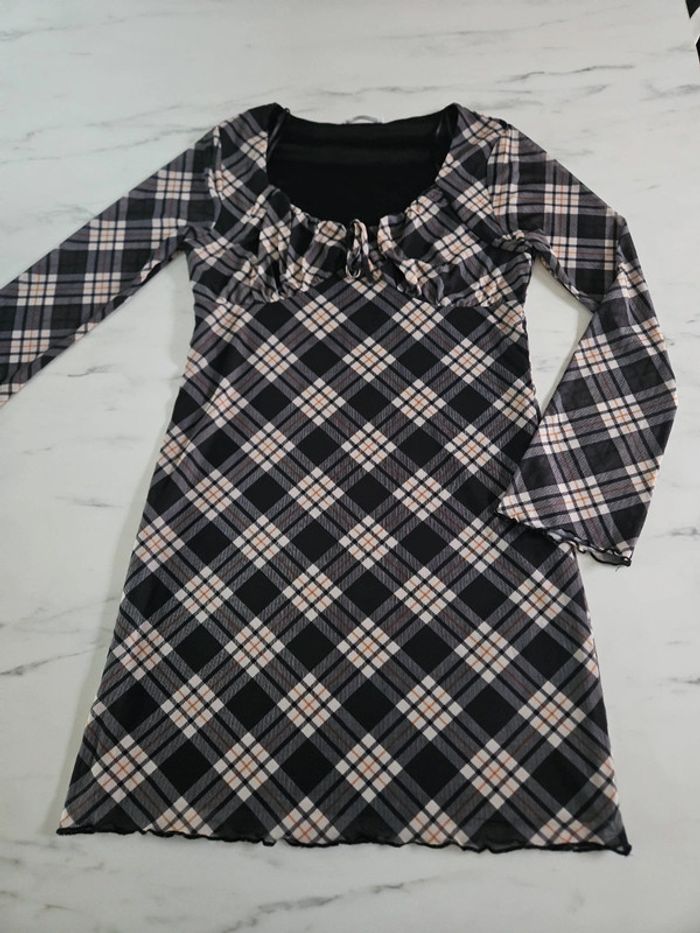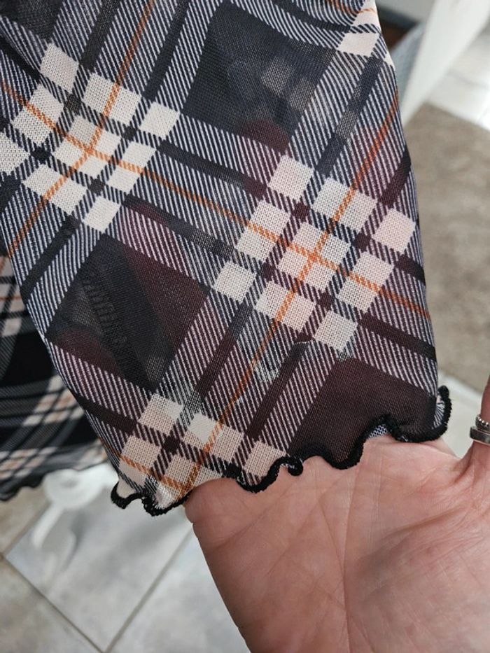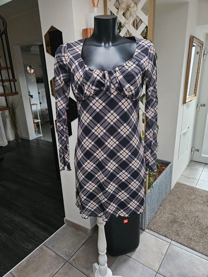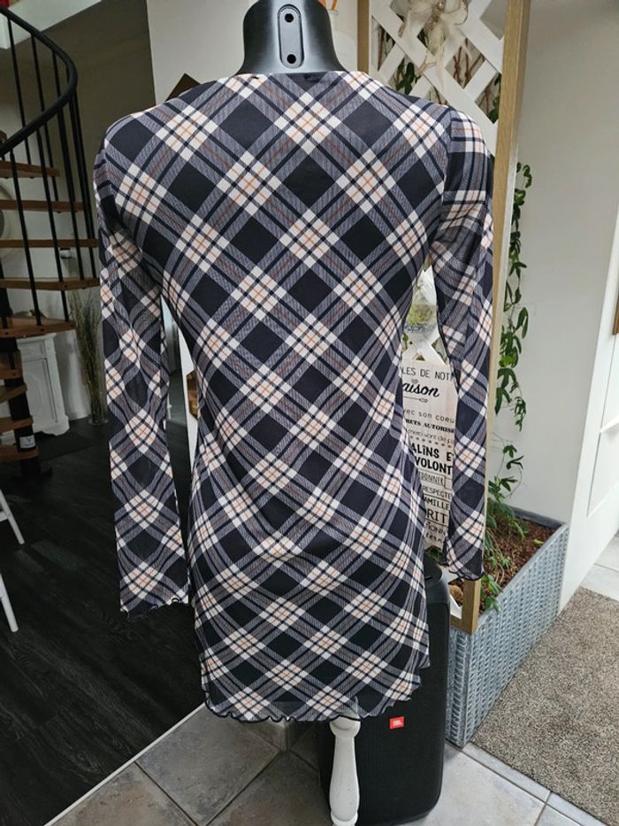Robe à motifs quadrillé. Légère et agréable à porter manches transparentes. État irréprochable