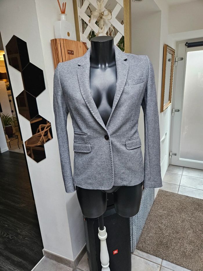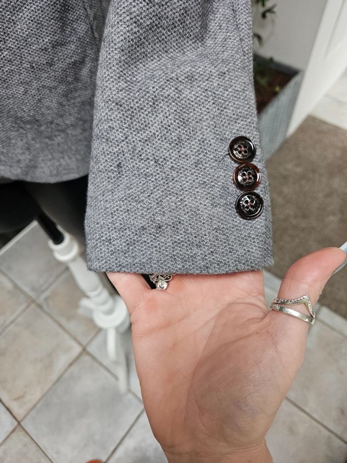 Superbe blazer gris moucheté. Il contient de la laine et il est en parfait état
