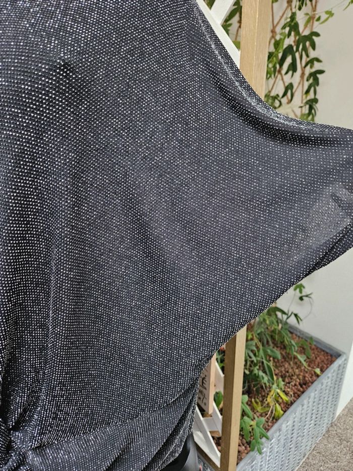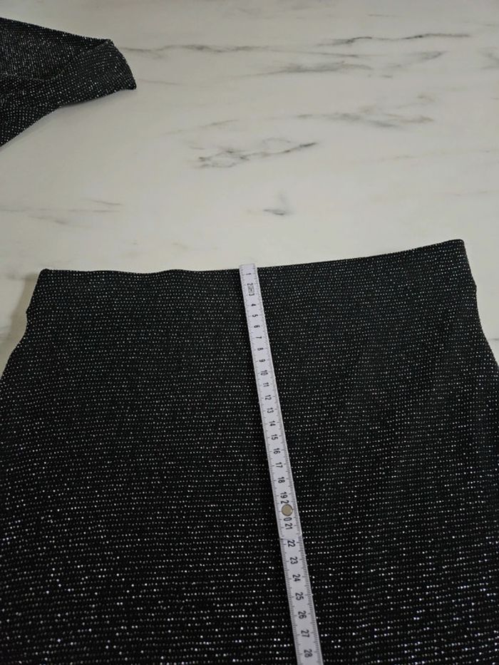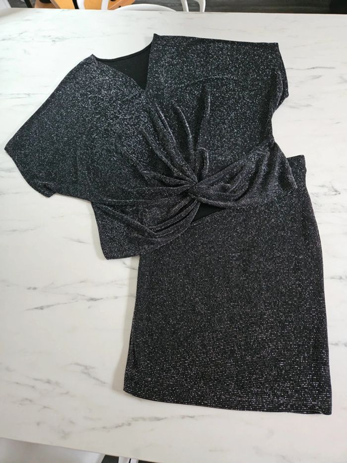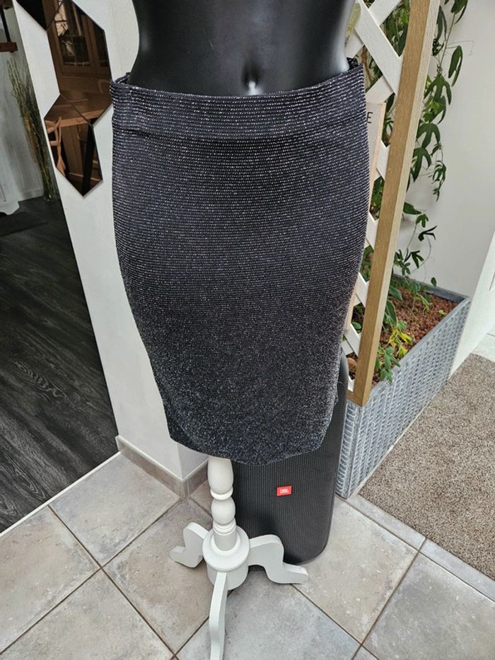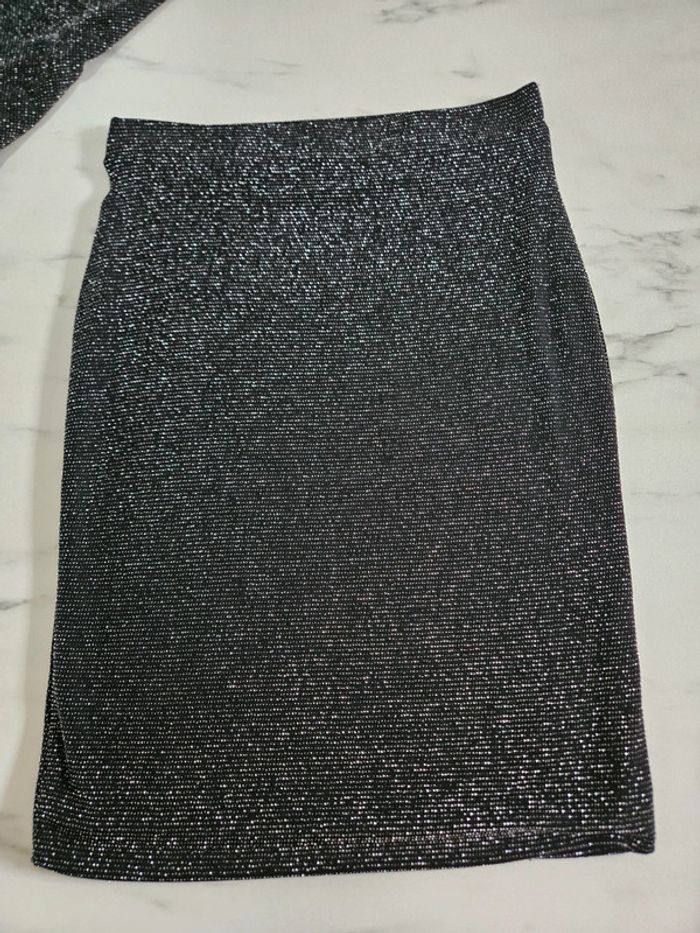 Ensemble noir tout en paillettes argentées. En état irréprochable. Parfait pour L/ XL taille de la jupe extensible jusqu'à 46 cm dimensions sur photos