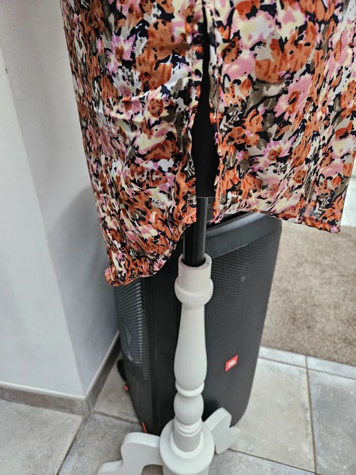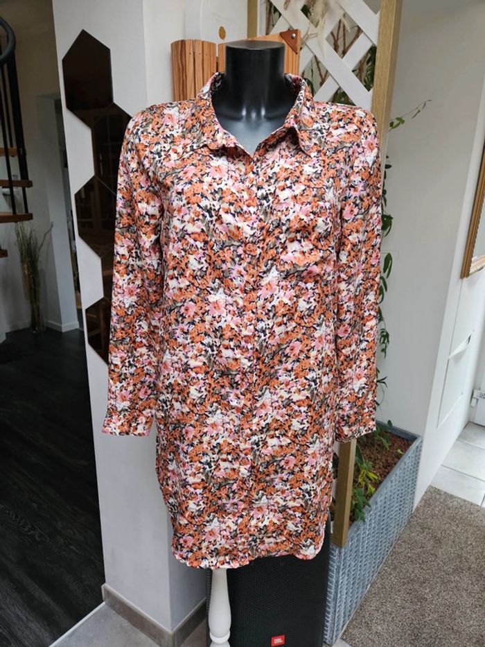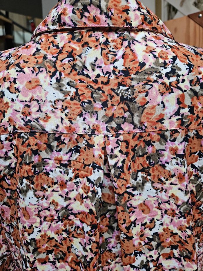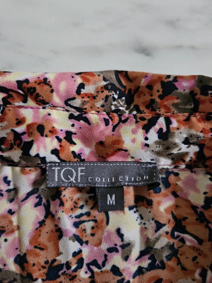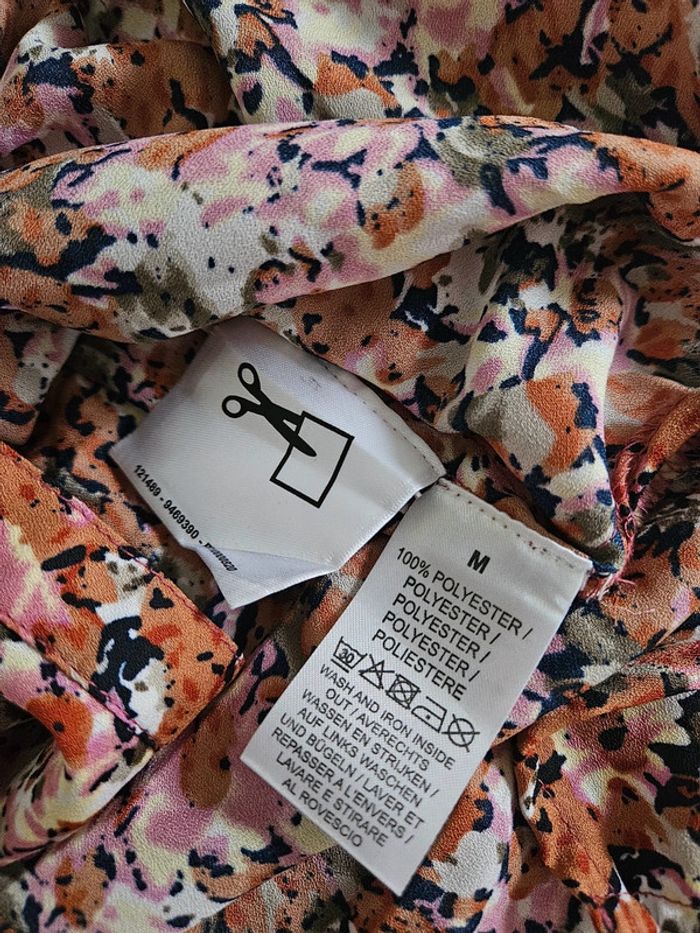 Dans les tons marron et rosé. Il n'a jamais été porté. Plus long derrière que devant. Matière légère et fluide. Dimensions sur mes photos
