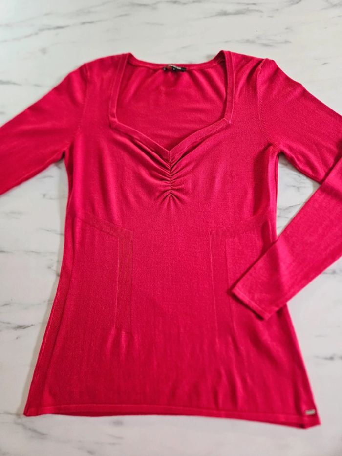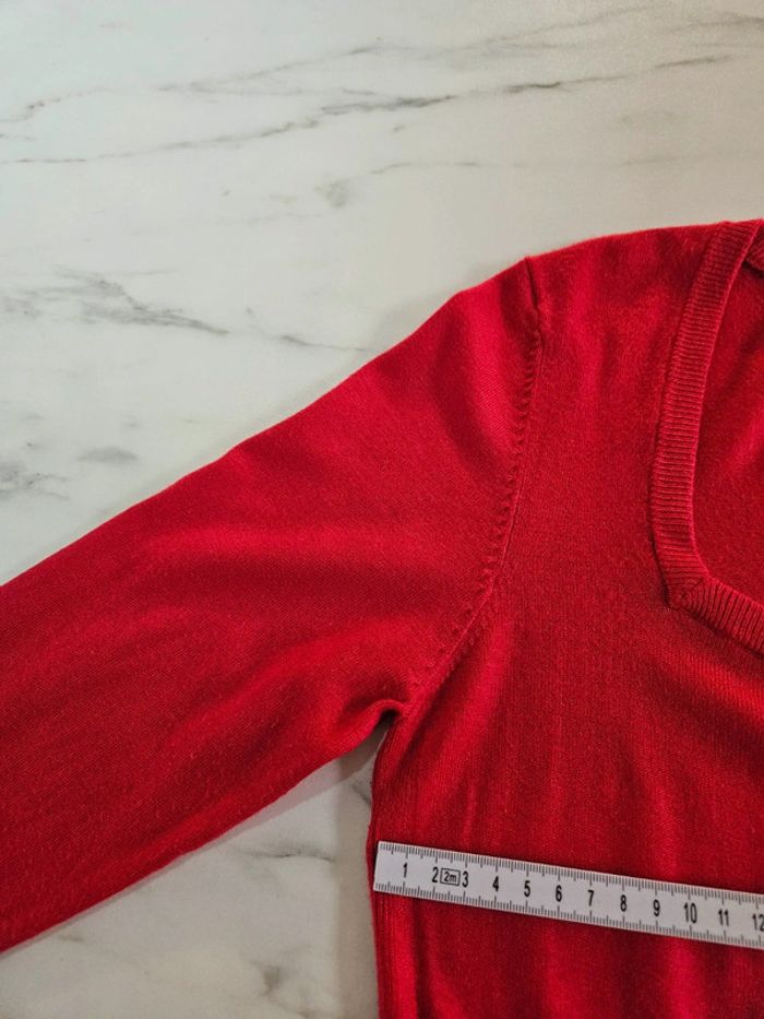 Il est en parfait état. Mi saison matière comme un pull. Dimensions sur les photos Rouge comme la photo ou se trouve l'étiquette