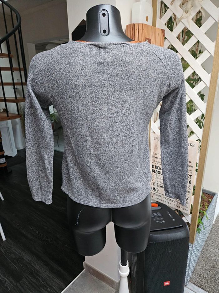 C'est une M mais étroite mieux pour un S Dimensions sur les photos Portée mais reste en très bon état. Matière satinée sur le devant