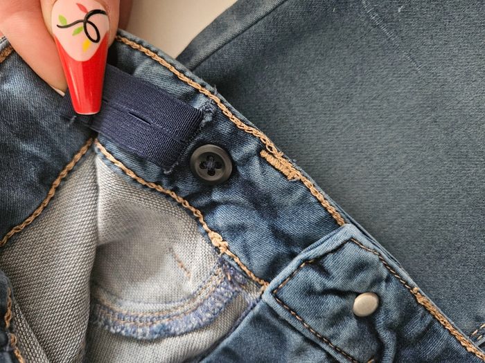 Il a l'aspect d'un jeans mais il est toit fin. Porté en bon état Il présente des marques d'usure mais il reste en bon état