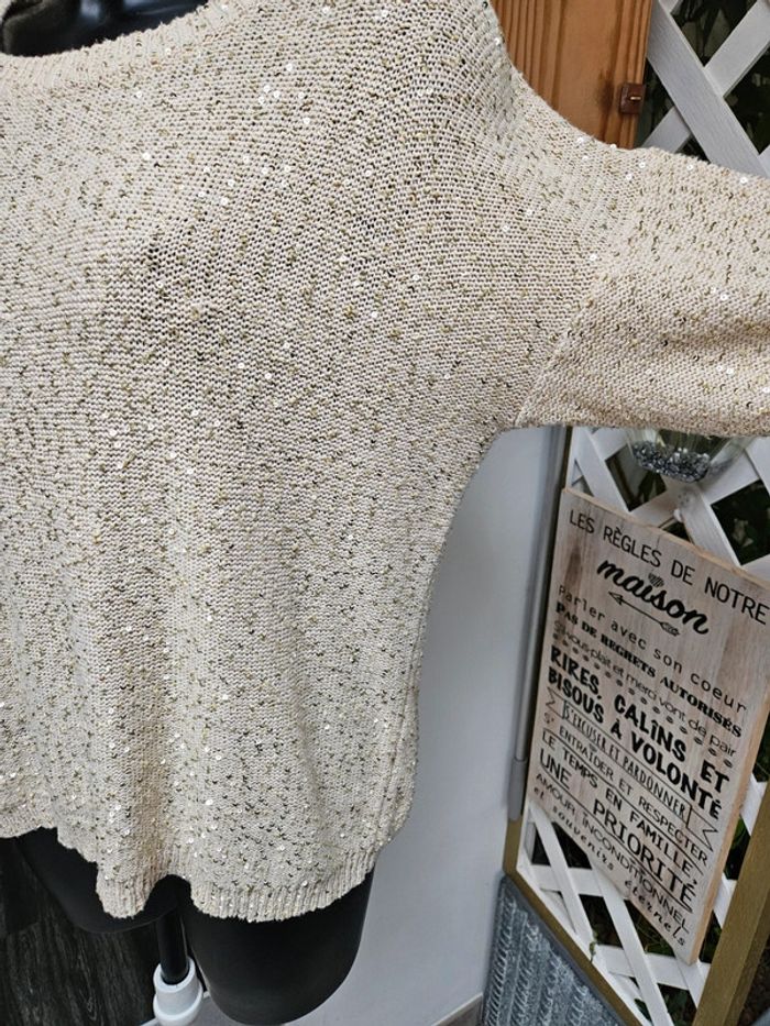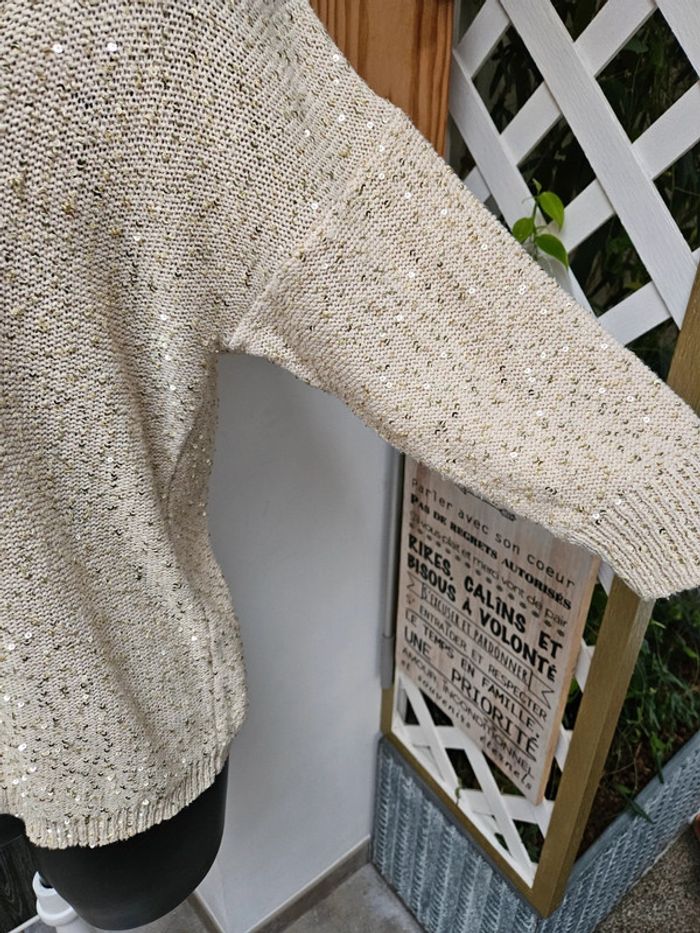 Mango pull manches courtes beige paillettes taille L - photo numéro 14