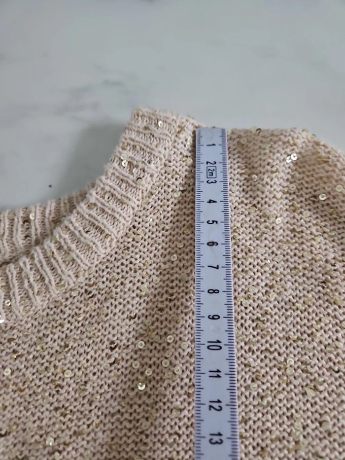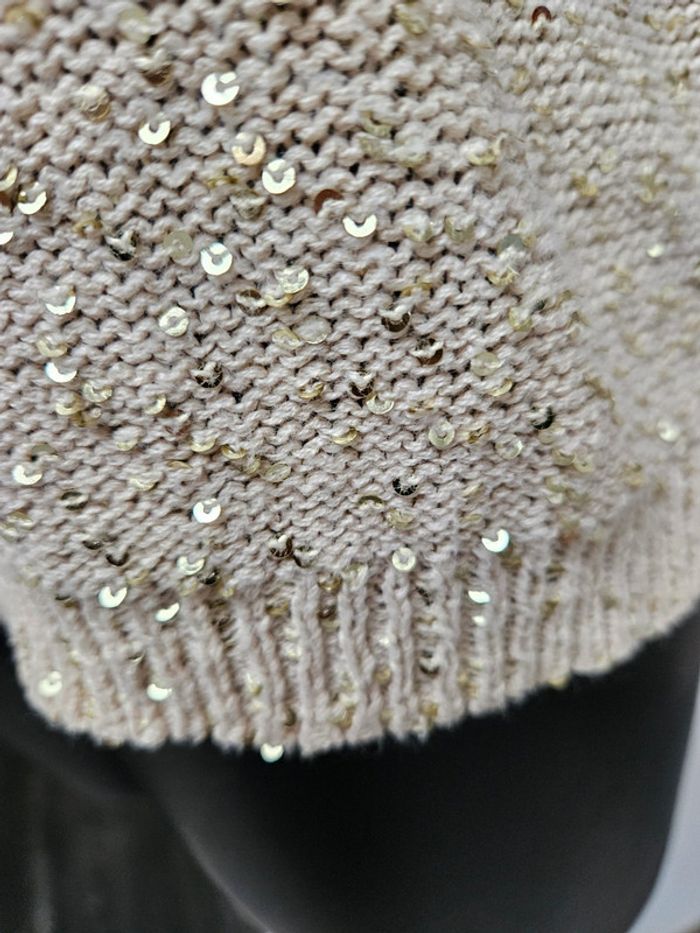 Mango pull manches courtes beige paillettes taille L - photo numéro 9