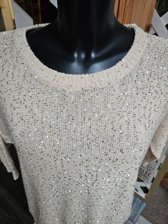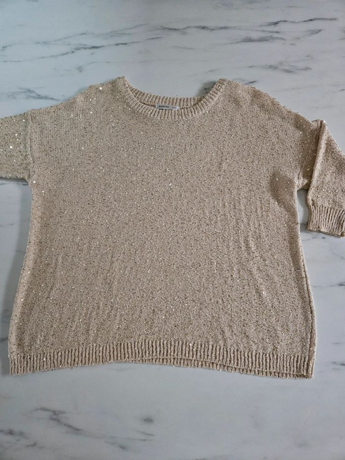 Mango pull manches courtes beige paillettes taille L - photo numéro 1